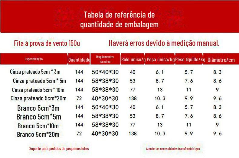 5cm*3m (144 rolls per box); silver gray, 5cm*3m (144 rolls per box); white, 5cm*5m (144 rolls per box); transp...