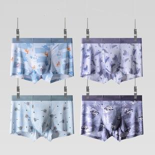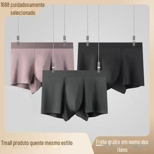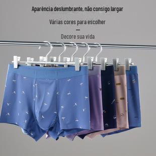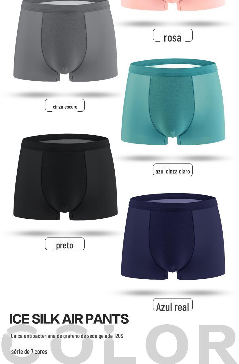 Cuecas masculinas de seda gelada, boxers respiráveis de verão, calças simples sem costura, boxers de cintura, atacado