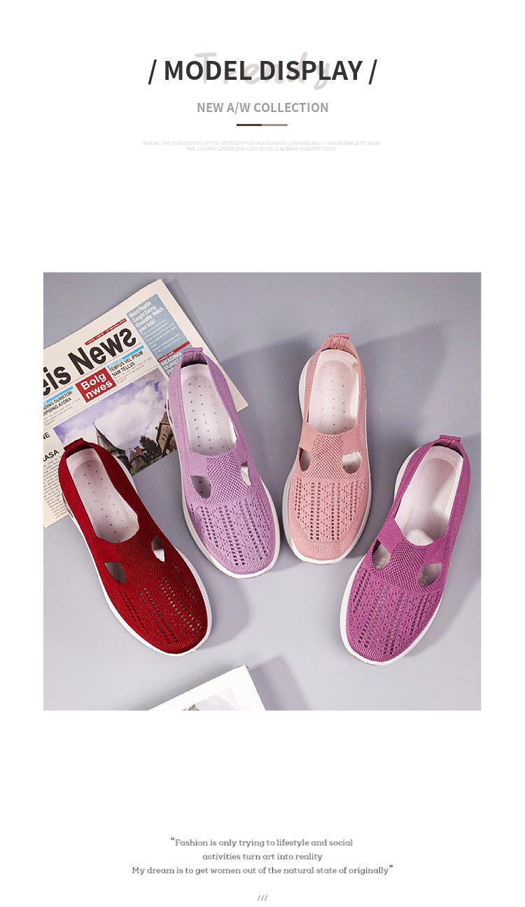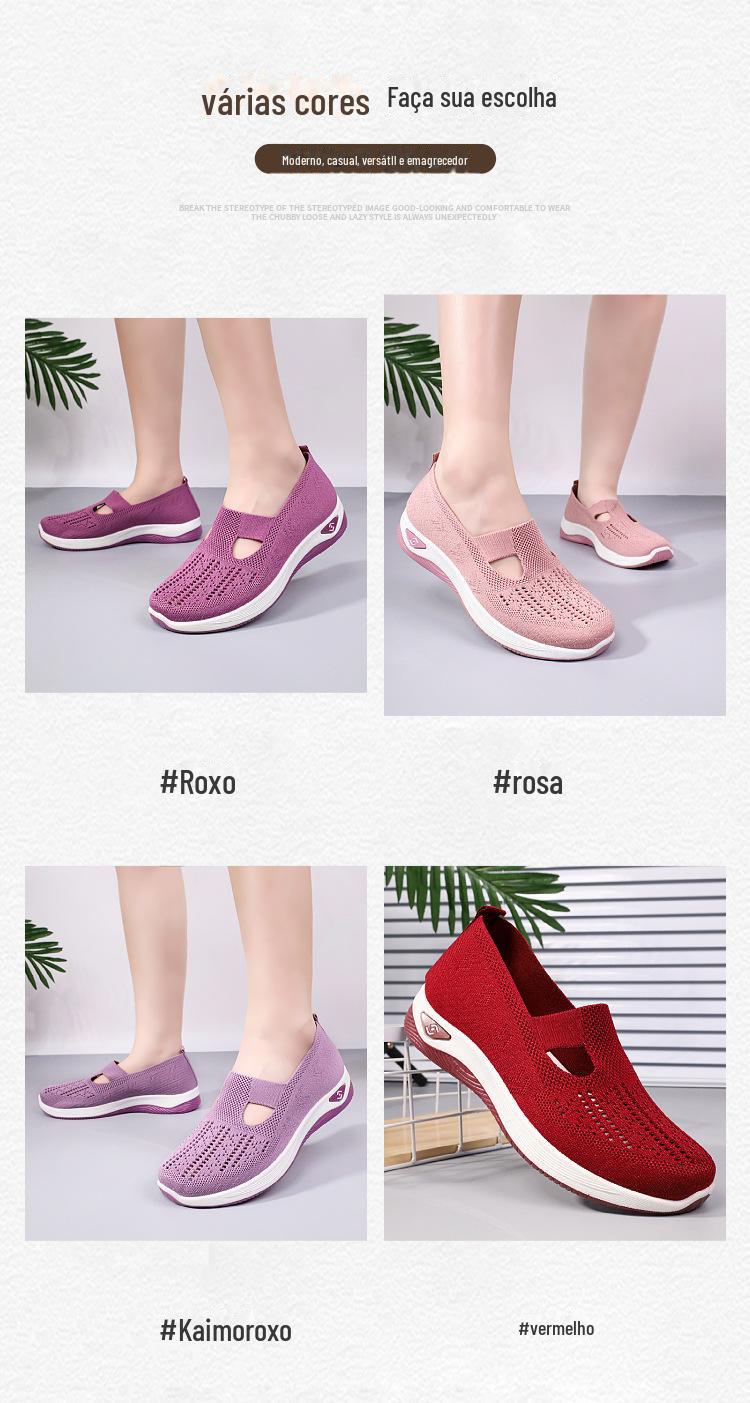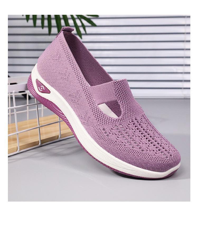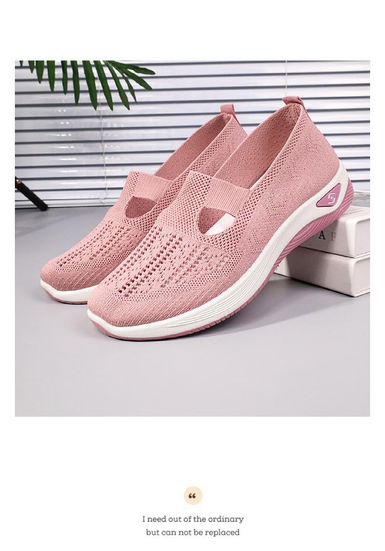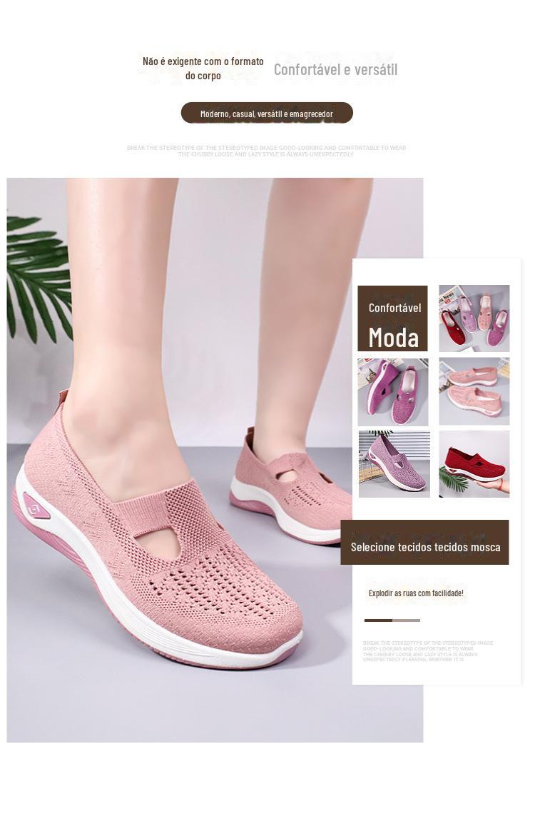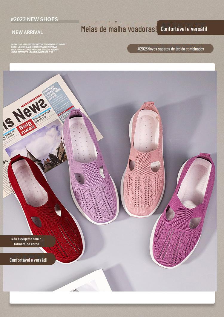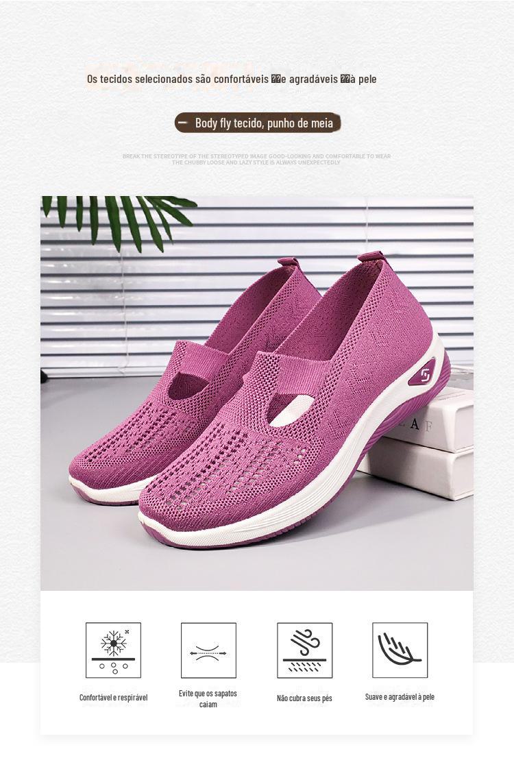 Sapatos de malha com mosca, calçados femininos casuais de verão, pedal com fundo macio, respiráveis, sapatos para mães de meia-idade e idosos, calçados para caminhada, atacado