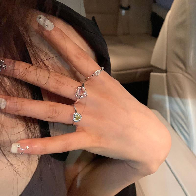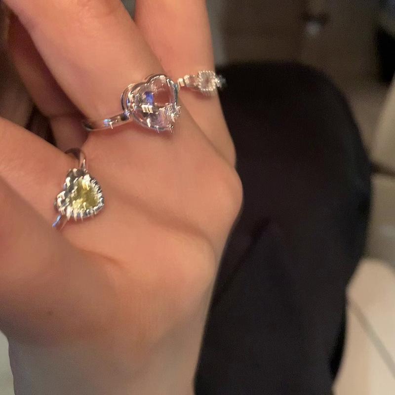 Anel de Zircônia em Forma de Coração para Mulheres, Design Nicho, Aliança Simples, Anel Personalizado para o Dedo Indicador, Estilo Celebridade da Internet, Novo Design Estilo Ins