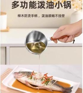 Pote de derramamento de óleo para piquenique doméstico, cozinha, aço inoxidável, cabo de madeira, derramando óleo quente, óleo quente, queima de óleo, pote de leite pequeno especial atacado