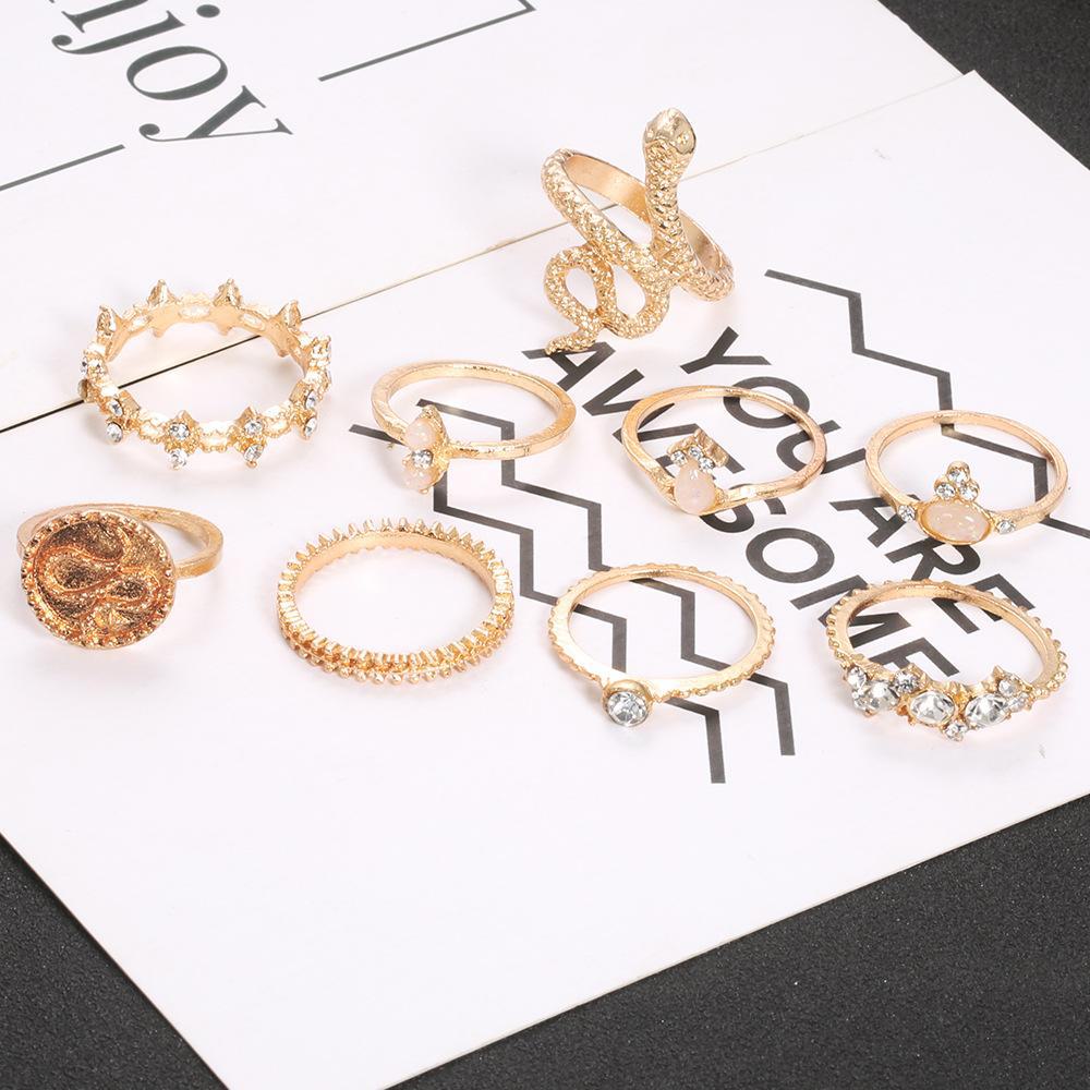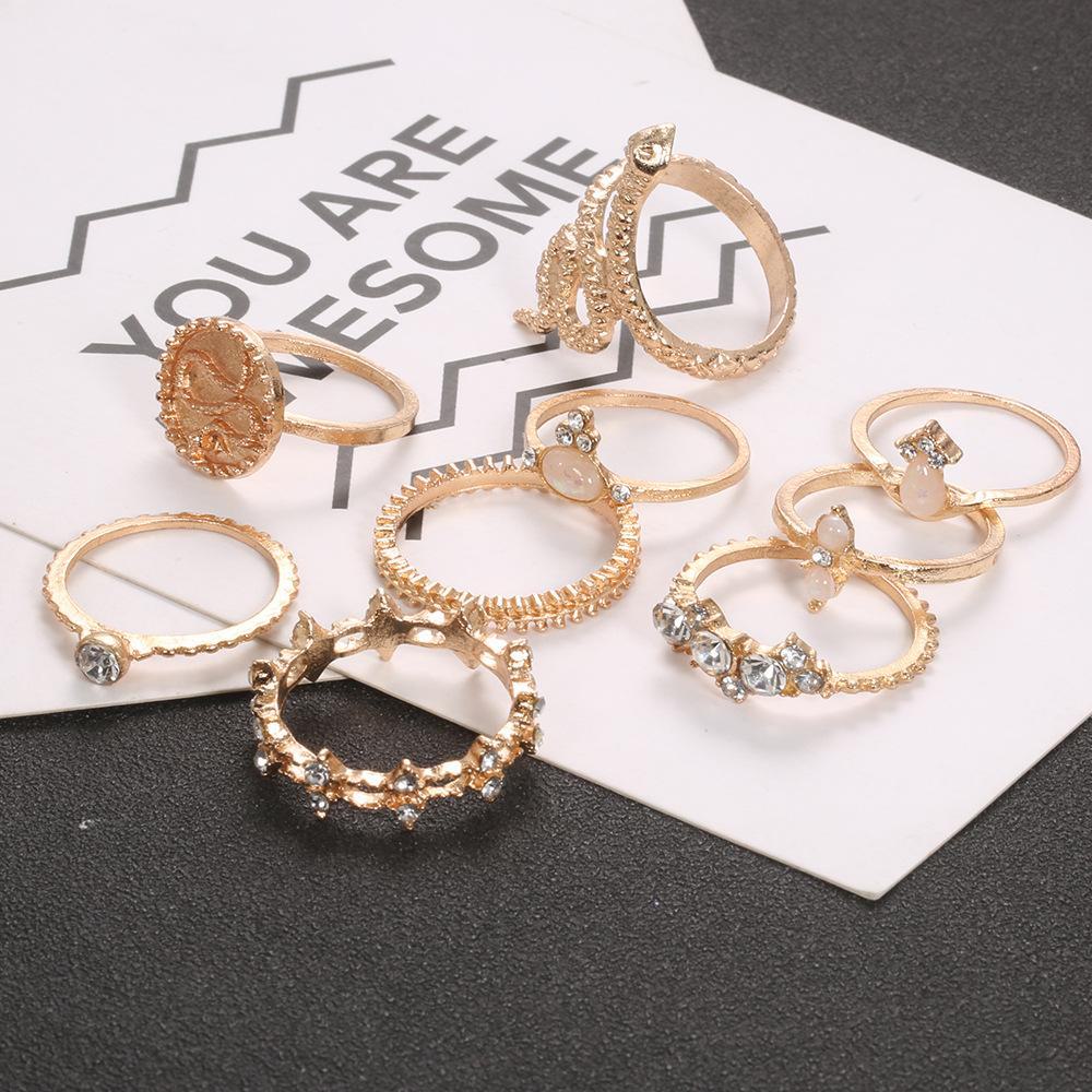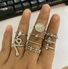 Venda quente moda europeia e americana personalidade exagerada esculpida estátua de buda diamante forma de cobra conjunto de anel de 10 peças
