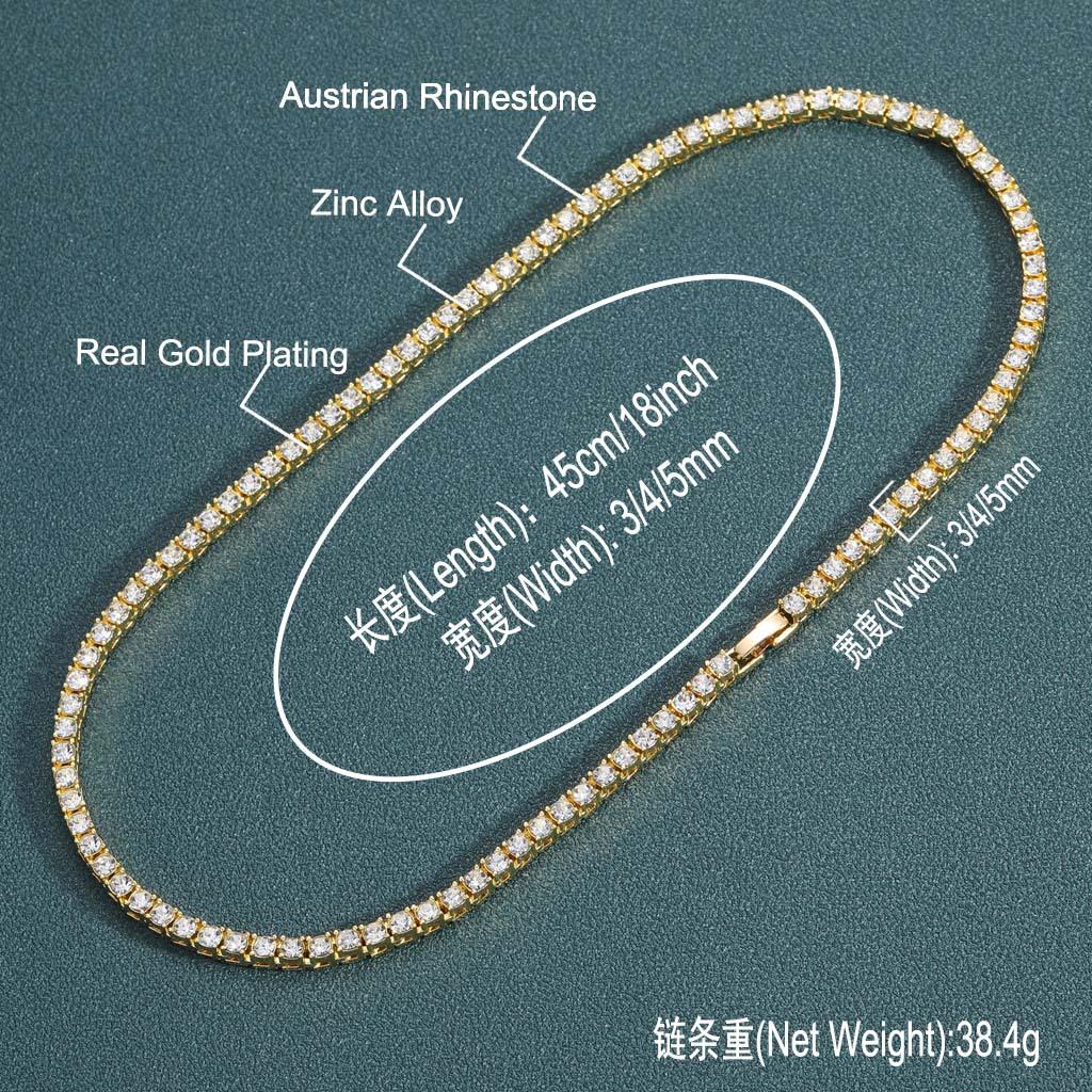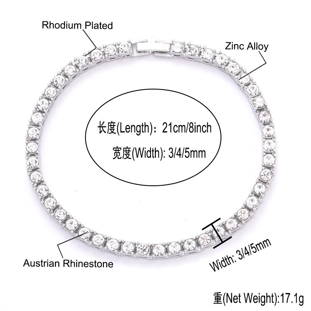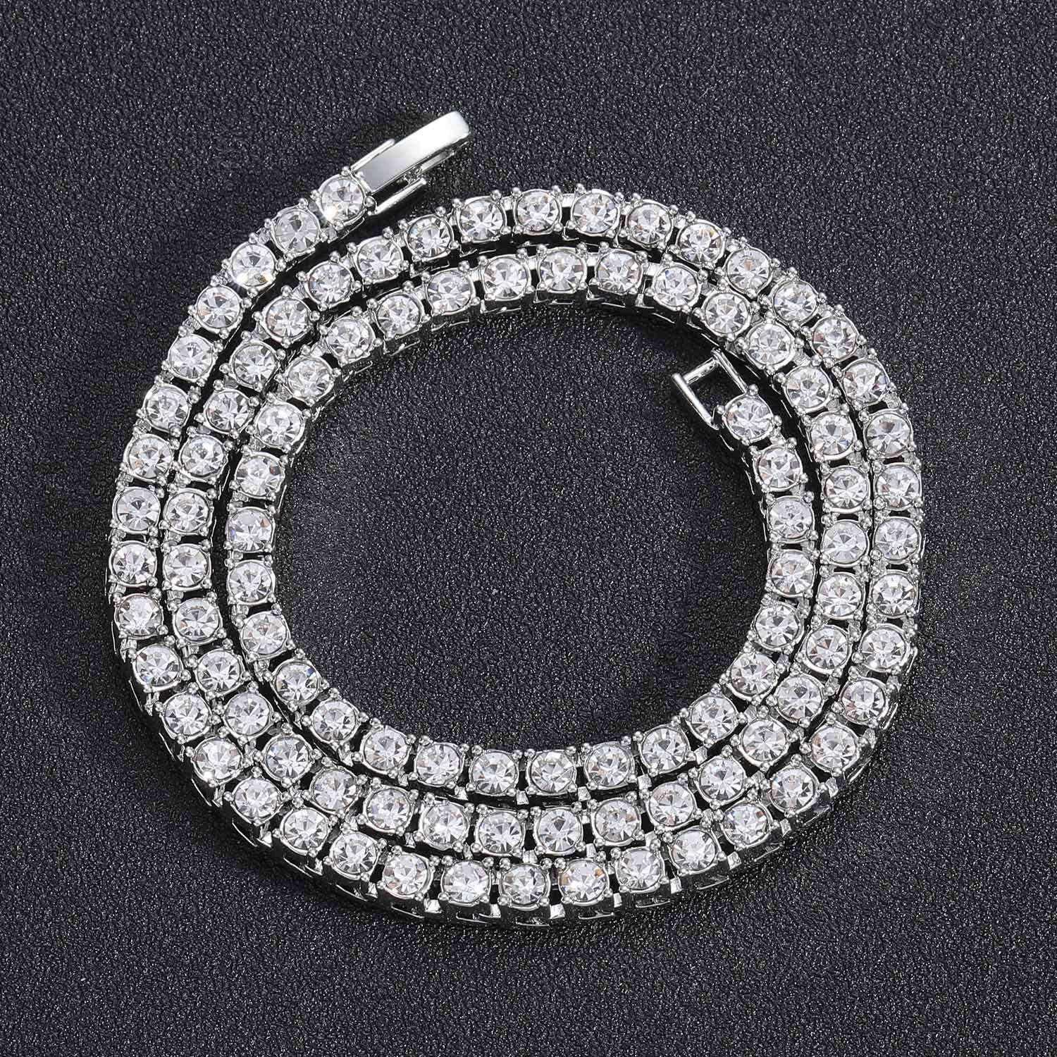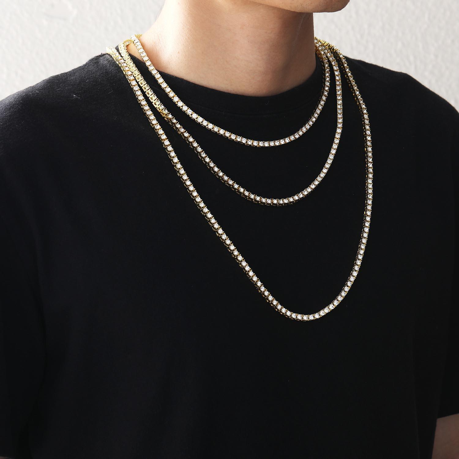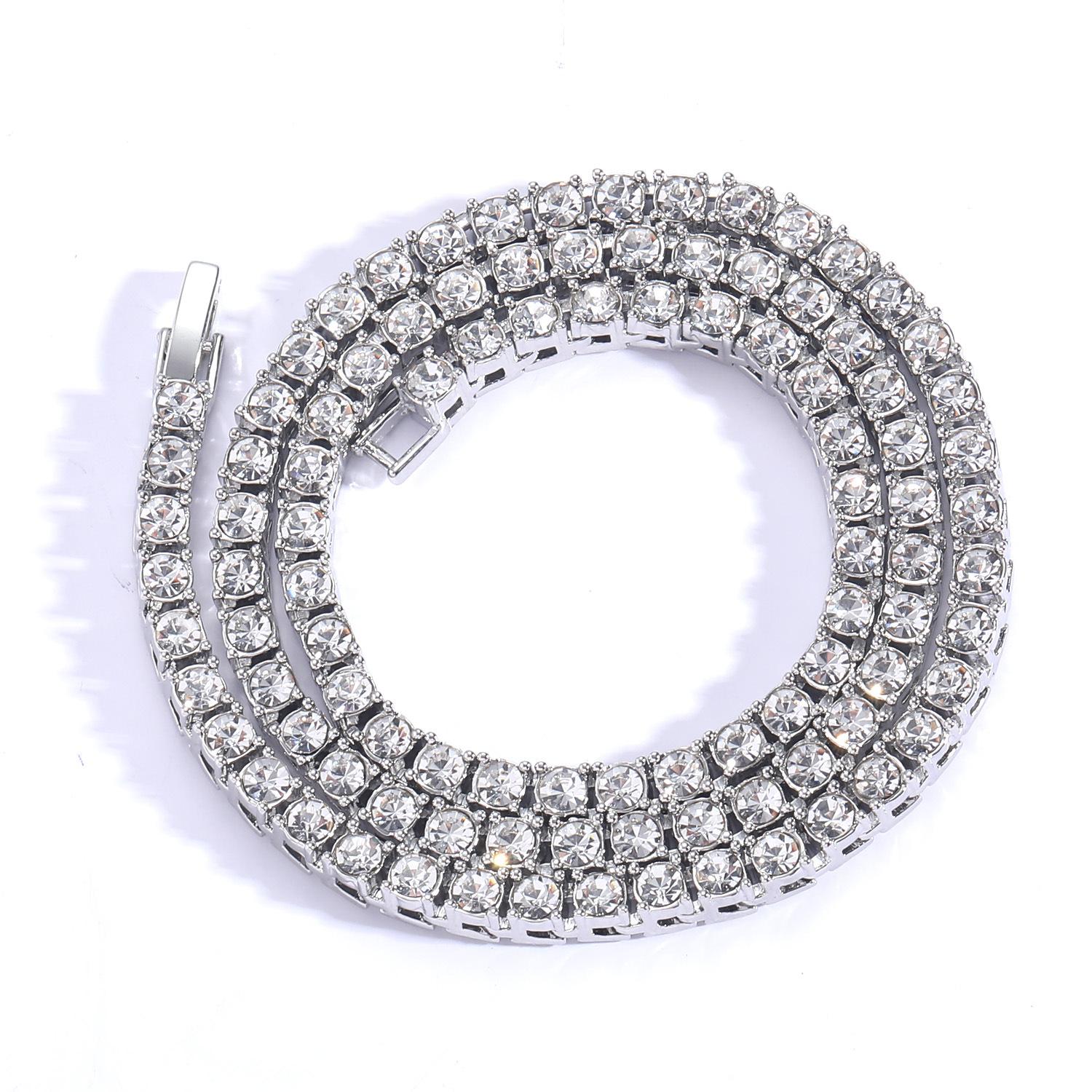 Colar europeu e americano masculino hip-hop tênis corrente 3mm 4mm 5mm única linha zircão colar corrente de tênis cross-border