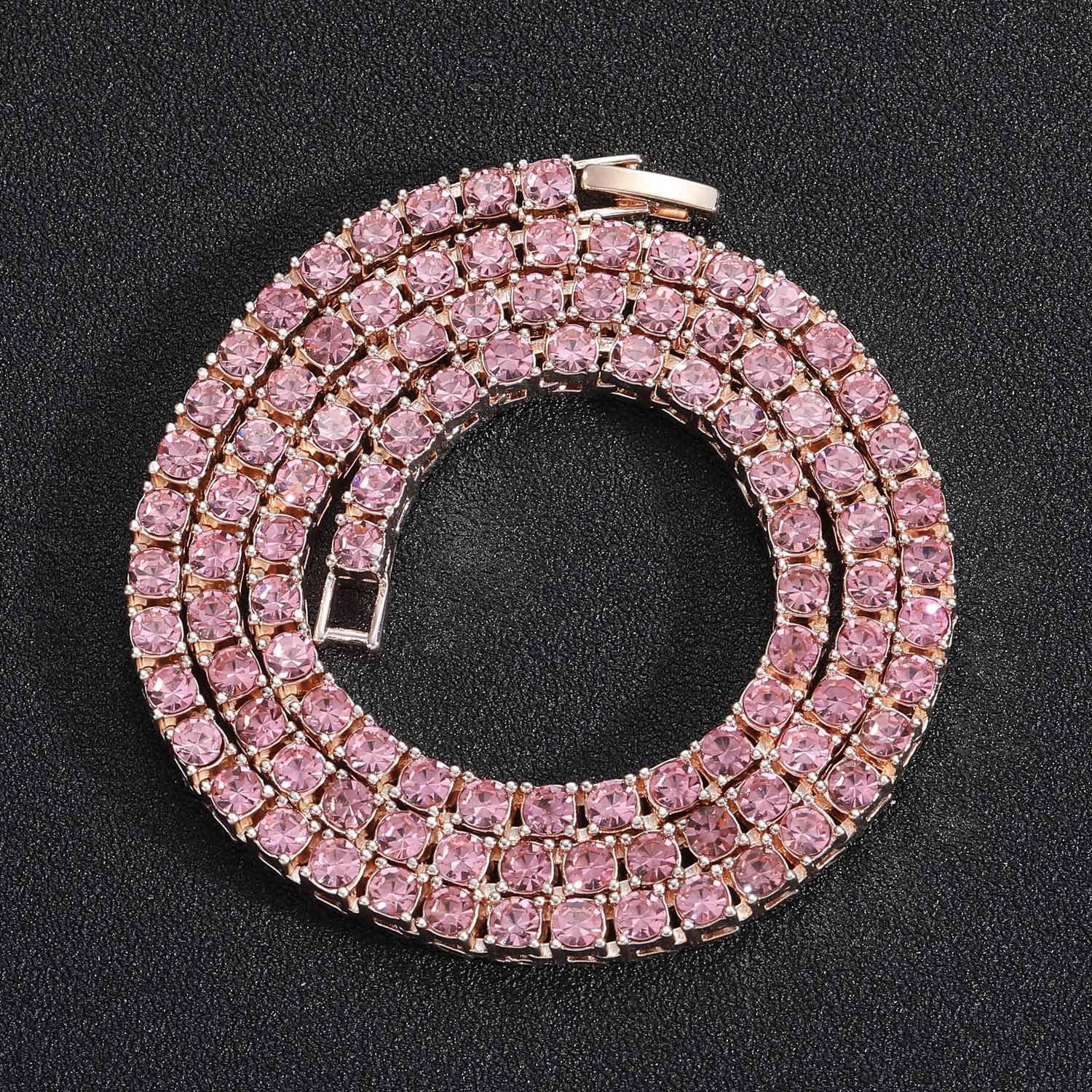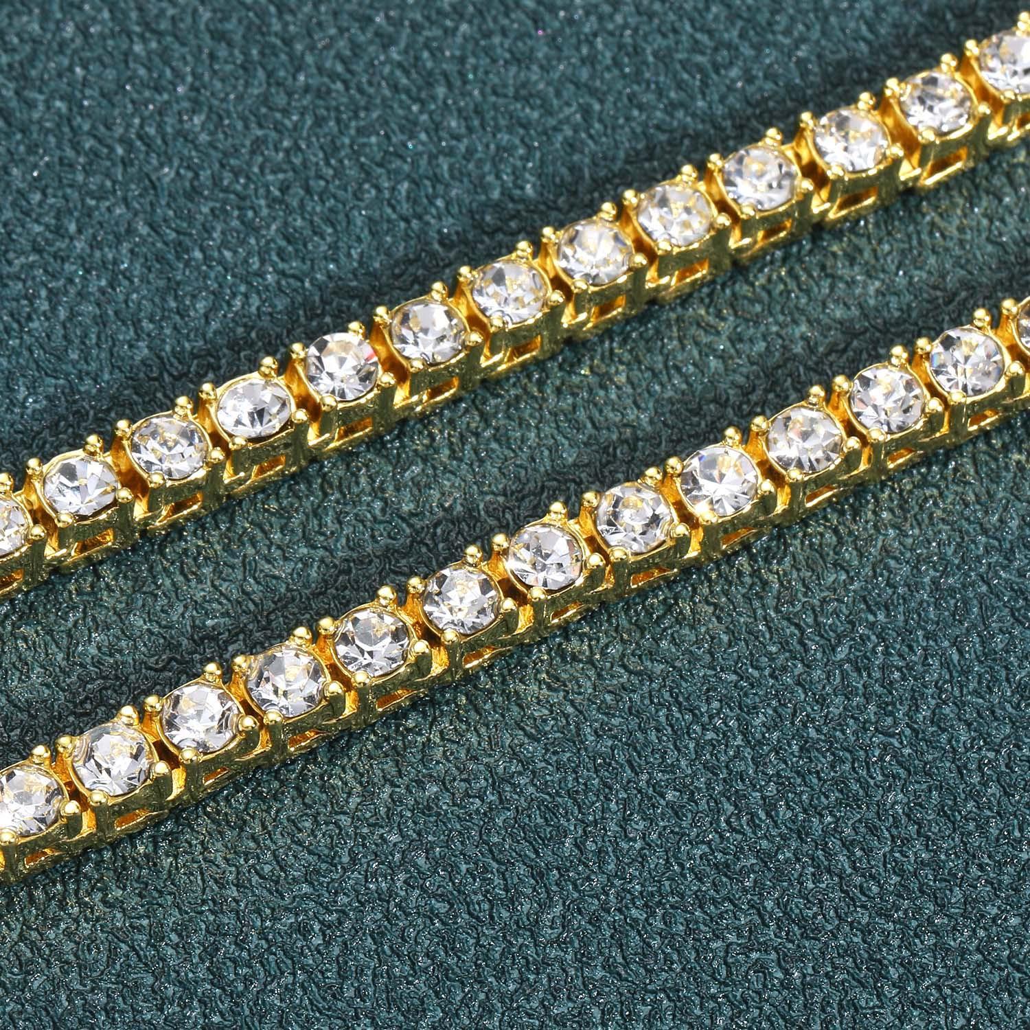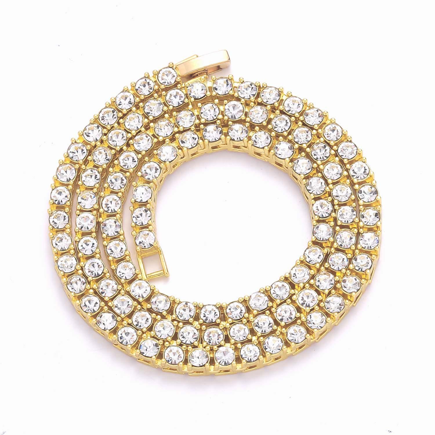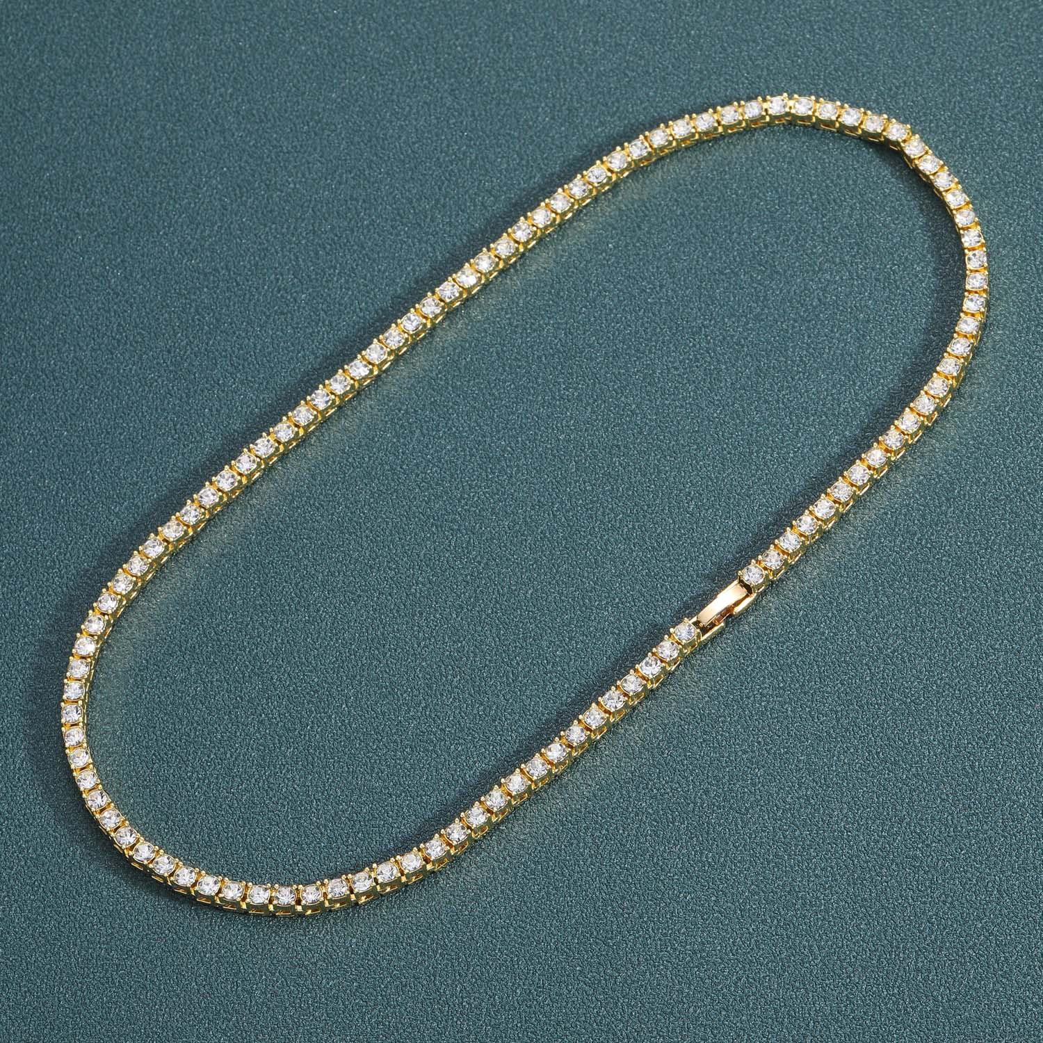 Colar europeu e americano masculino hip-hop tênis corrente 3mm 4mm 5mm única linha zircão colar corrente de tênis cross-border