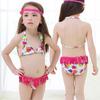 Crianças Swimwear Meninas 'Infant e Young Crianças Rosa Vermelho Tassel Estéreo Flor Estéreo Estampado Biquini Split Swimsuit