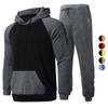 Novo Conjunto de Lã Masculino Europeu e Americano Outono/Inverno 2026 com Moletom com Capuz e Zíper e Calça de Moletom Casual com Bloqueio de Cor para Homens