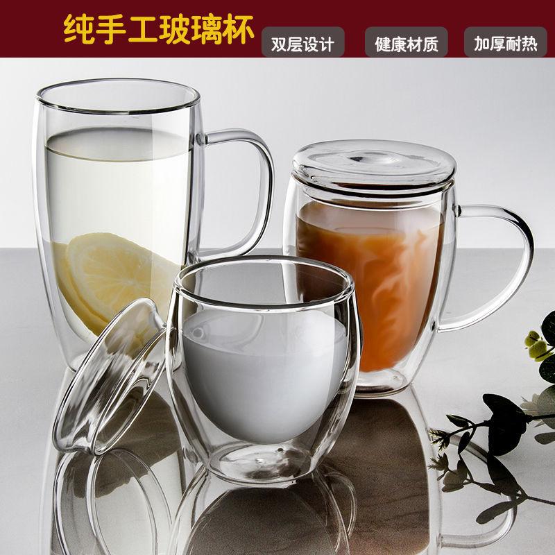 Copo de água de vidro transparente de camada dupla para casa copo de chá de flor resistente ao calor criativo xícara de isolamento térmico xícara de café de suco de leite