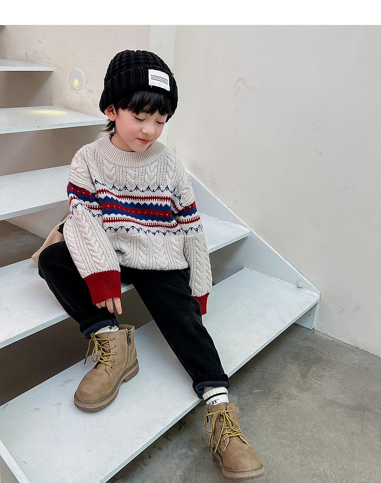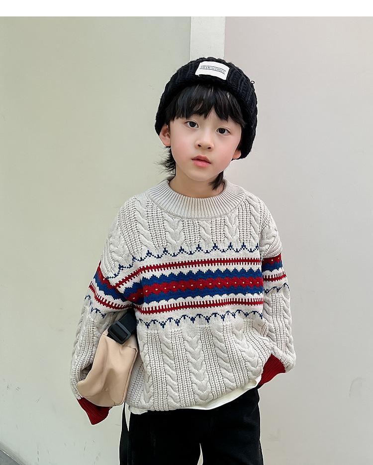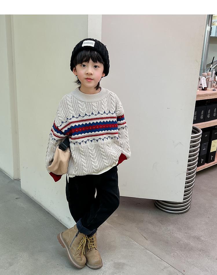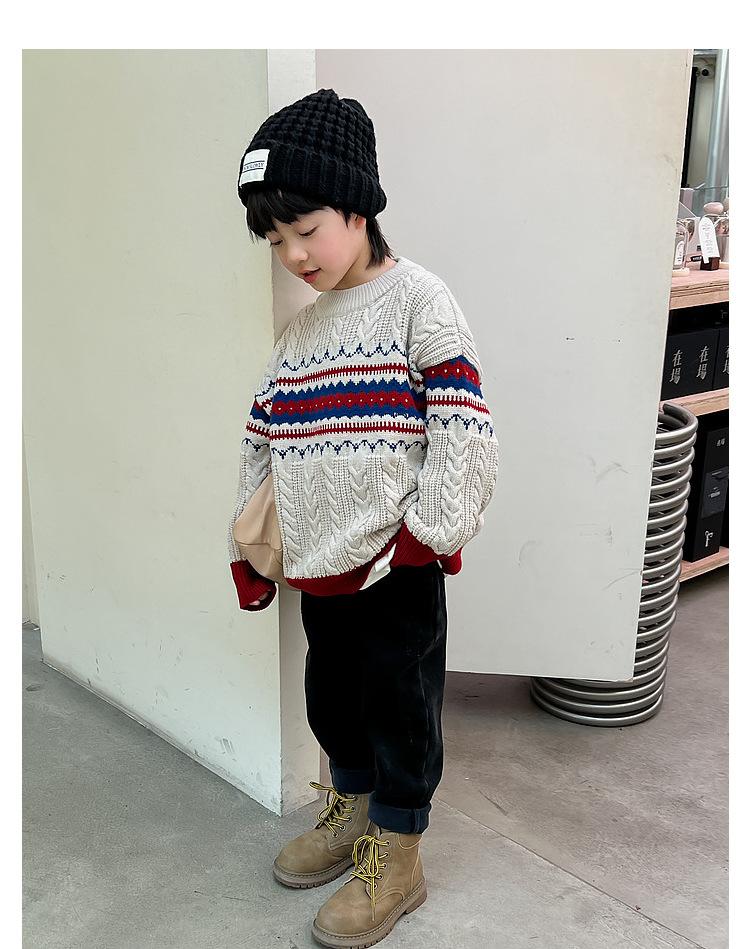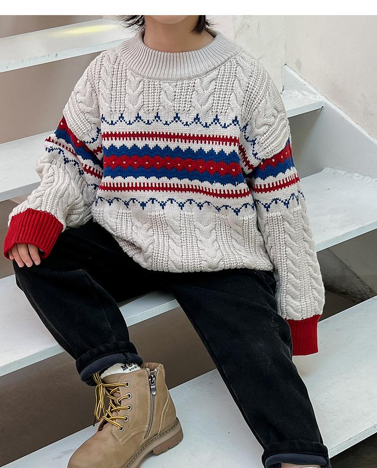 Suéter infantil outono e inverno novo tricô infantil solto pullover meninos estilo coreano versátil moda suéter de Natal