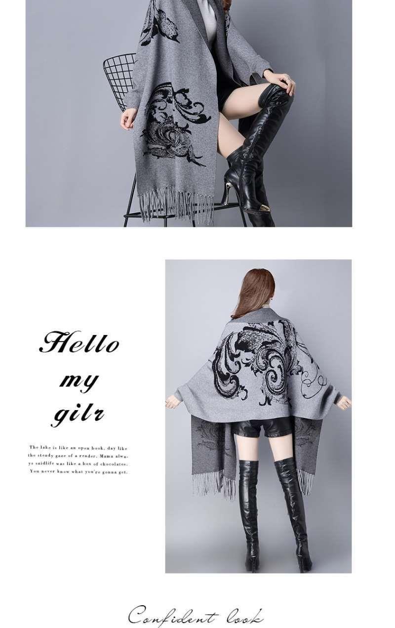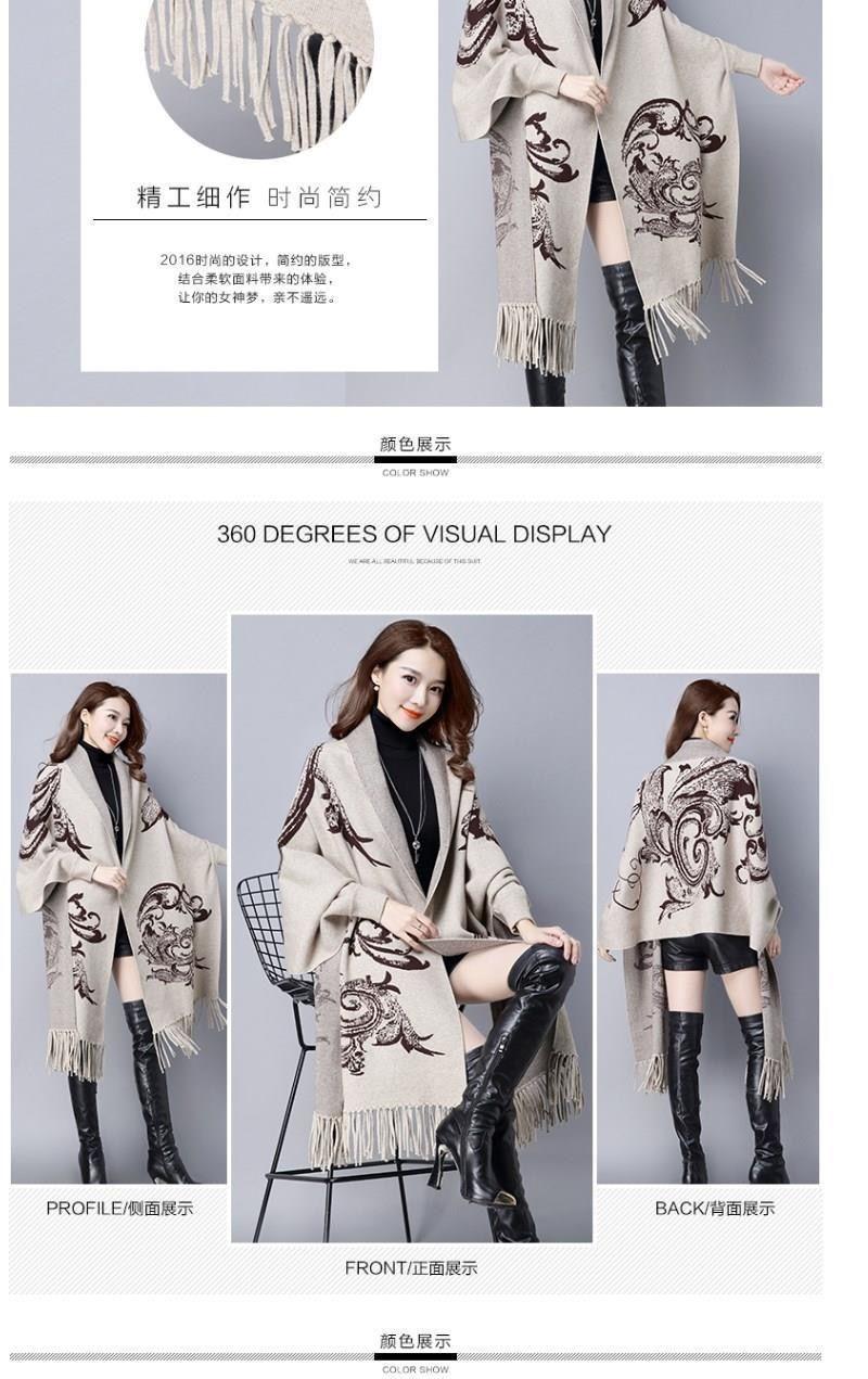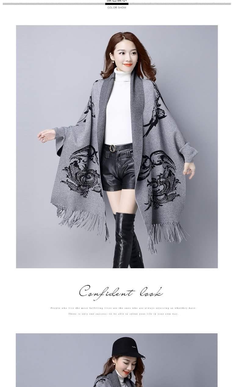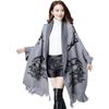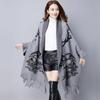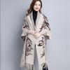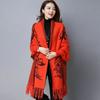 Outono e Inverno Primavera Novo xale feminino casaco exterior camisa de comprimento médio Cabo estampado borla top estilo étnico simples