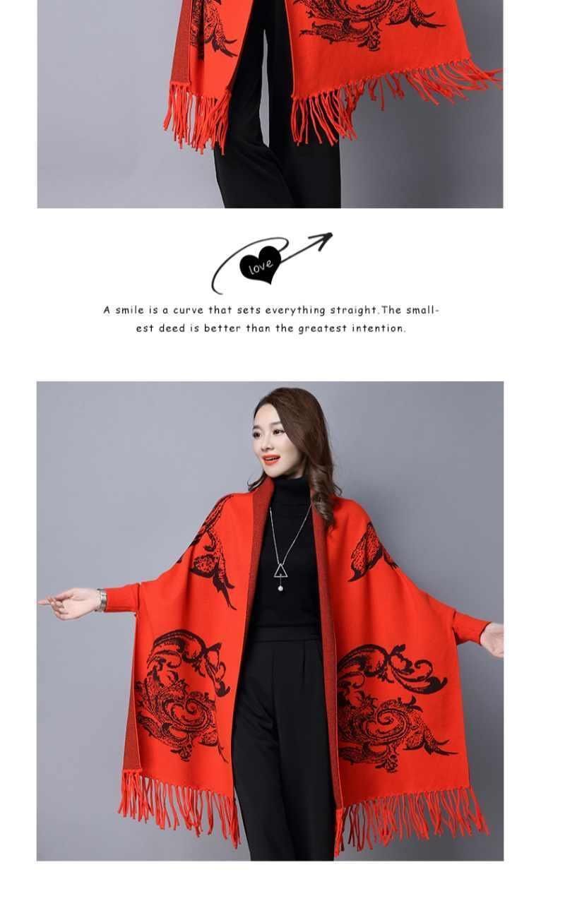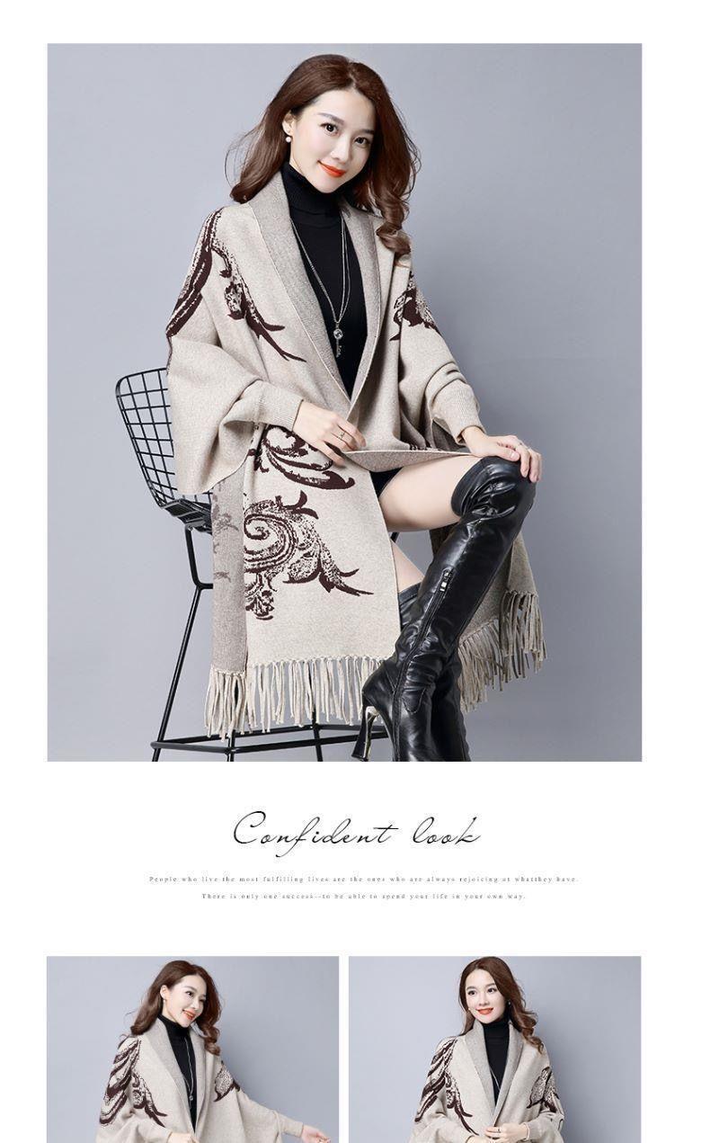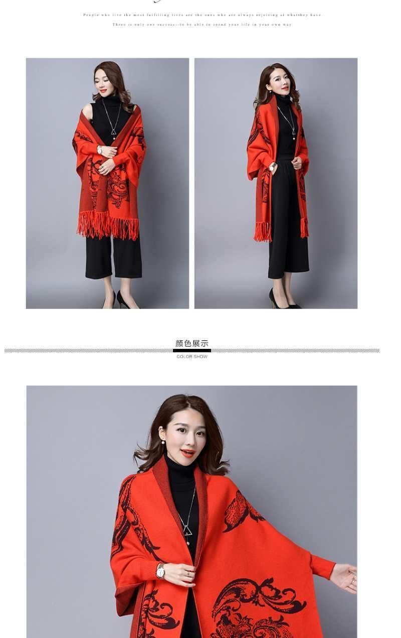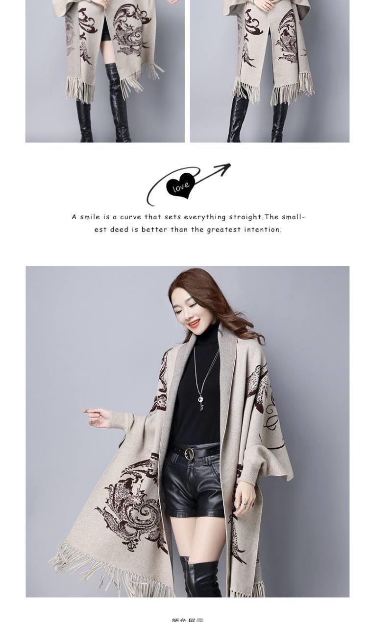 Outono e Inverno Primavera Novo xale feminino casaco exterior camisa de comprimento médio Cabo estampado borla top estilo étnico simples