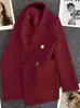 Jaqueta de terno vinho tinto com fivela de metal feminina, primavera e outono 2024, novo temperamento coreano de alta qualidade, popular, terno feminino