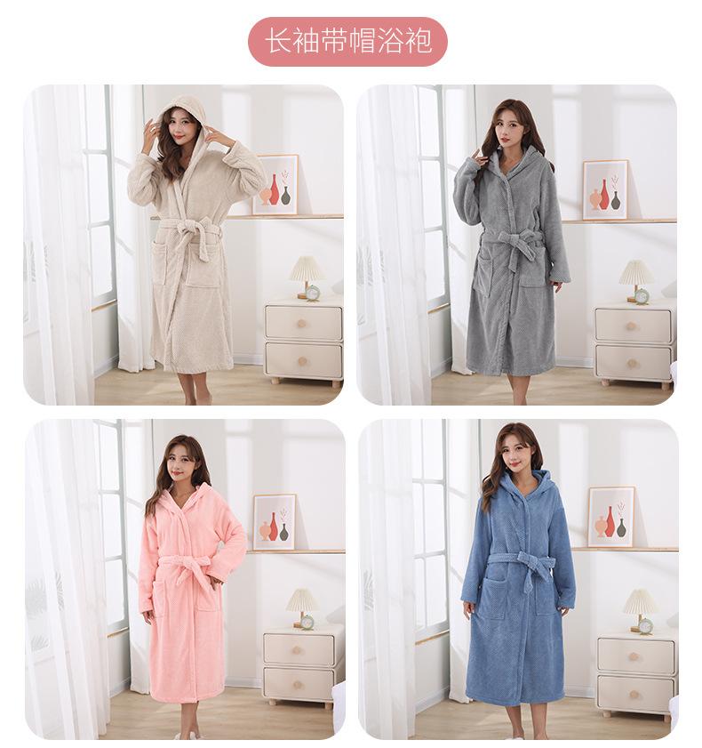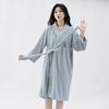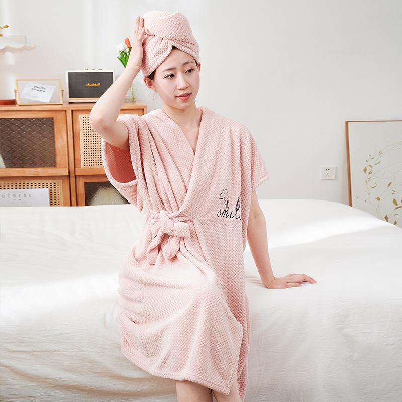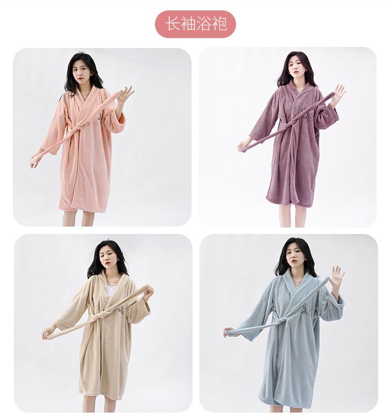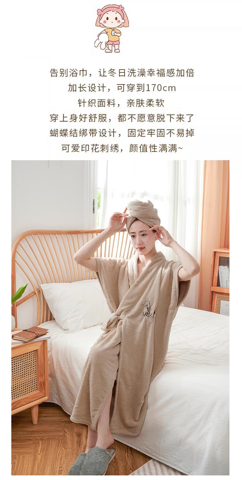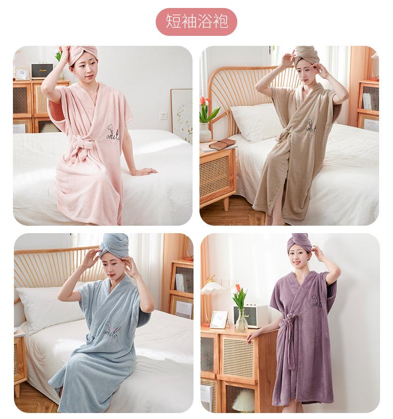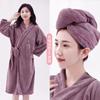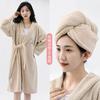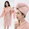 Novo roupão de banho feminino de manga comprida e curta com cadarço, grosso, de lã coral, touca de banho de secagem rápida, roupa de dormir para outono e inverno