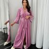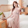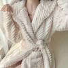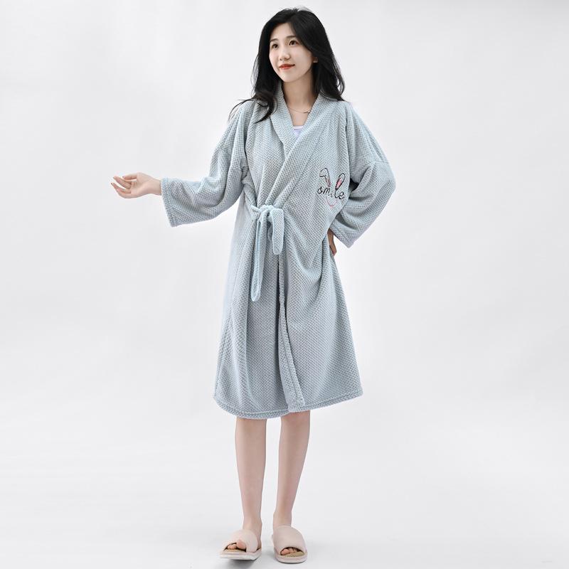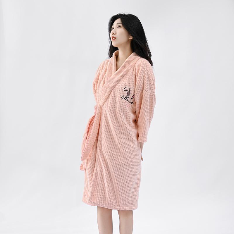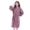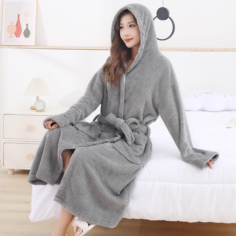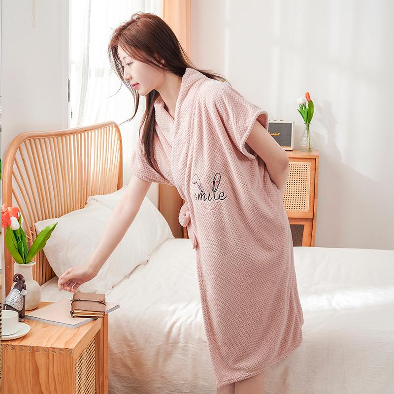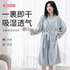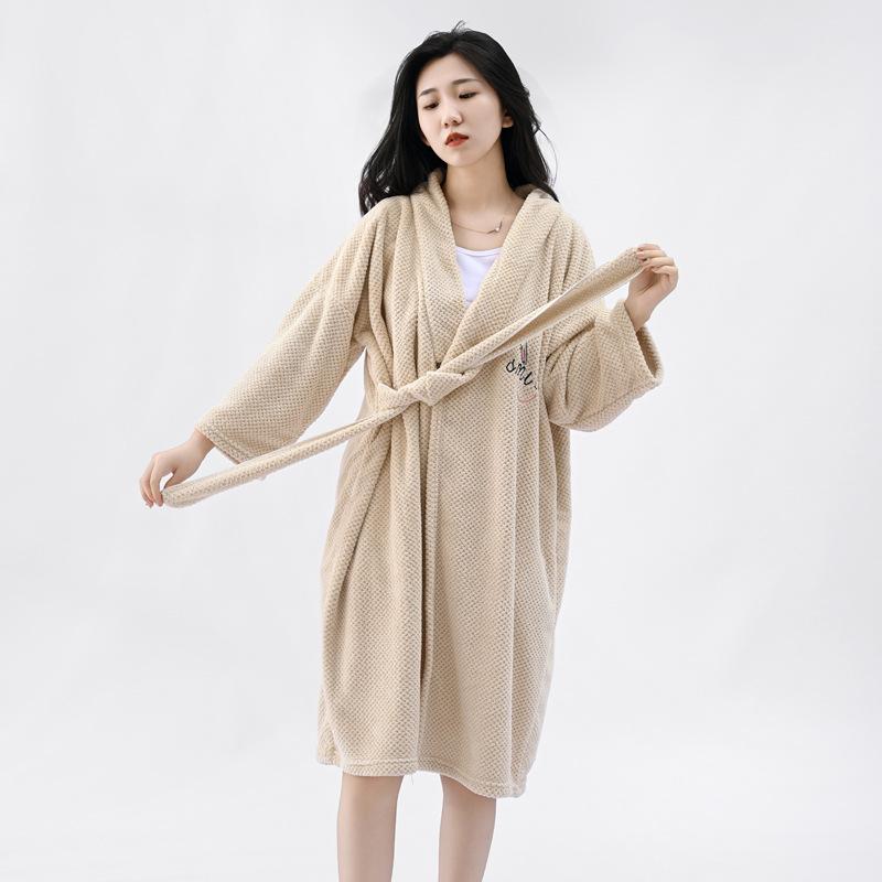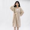 Novo roupão de banho feminino de manga comprida e curta com cadarço, grosso, de lã coral, touca de banho de secagem rápida, roupa de dormir para outono e inverno