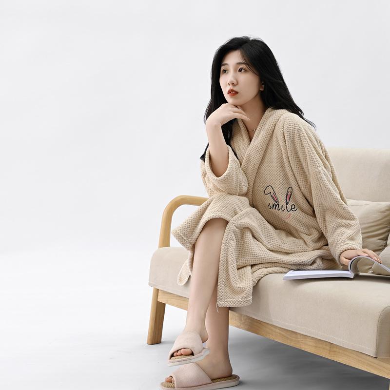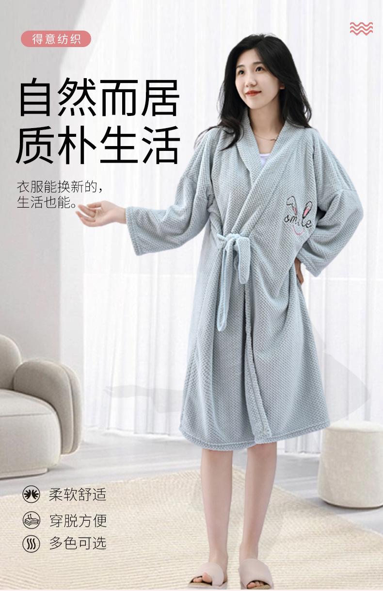 Blue Lucky Rabbit-Long Sleeve Bathrobe, Milk Cafe Auspicious Rabbit-Long Sleeve Bathrobe, Lotus Root Starch Au...