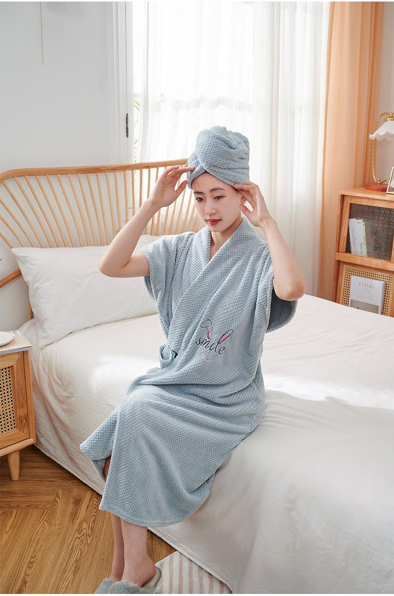 Blue auspicious rabbit-[long sleeve bathrobe shower cap]]