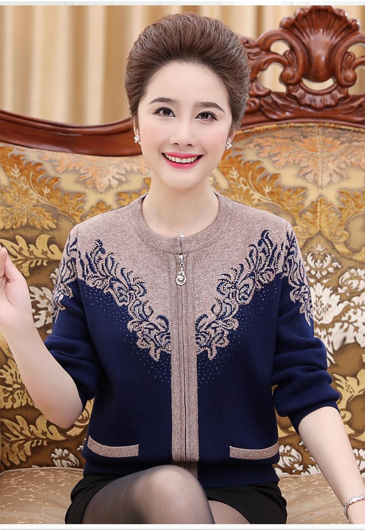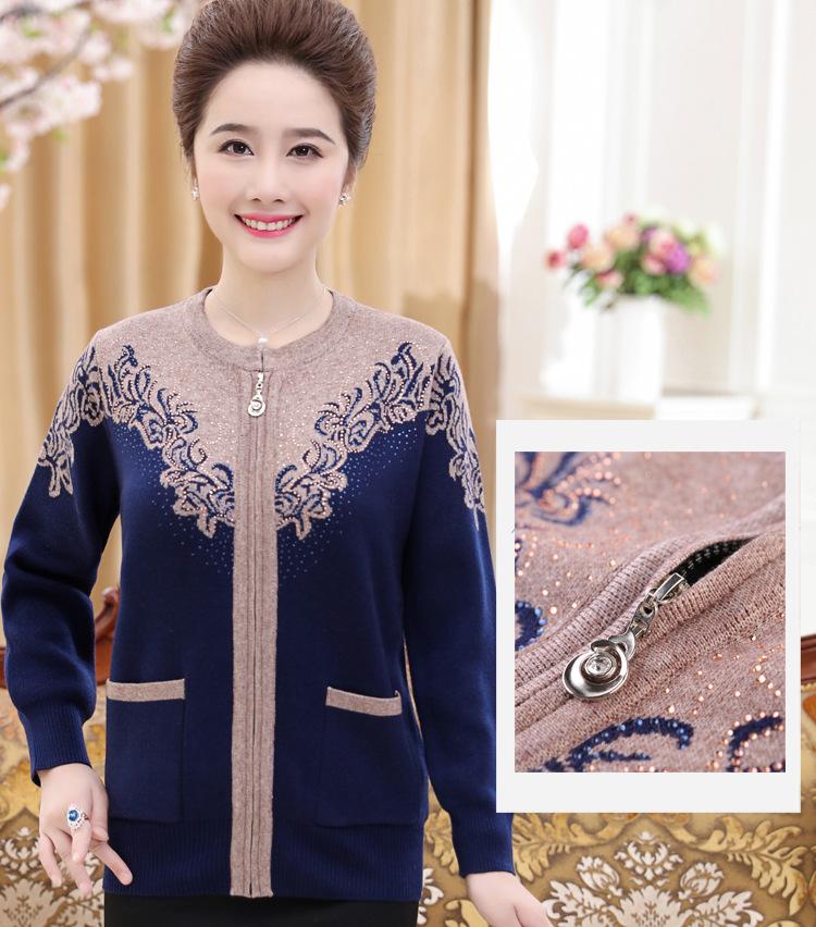 Roupa de meia-idade e idosa primavera mulher 50 anos 60 mãe malha cardigan camisola homem velho primavera e outono casaco avó roupa