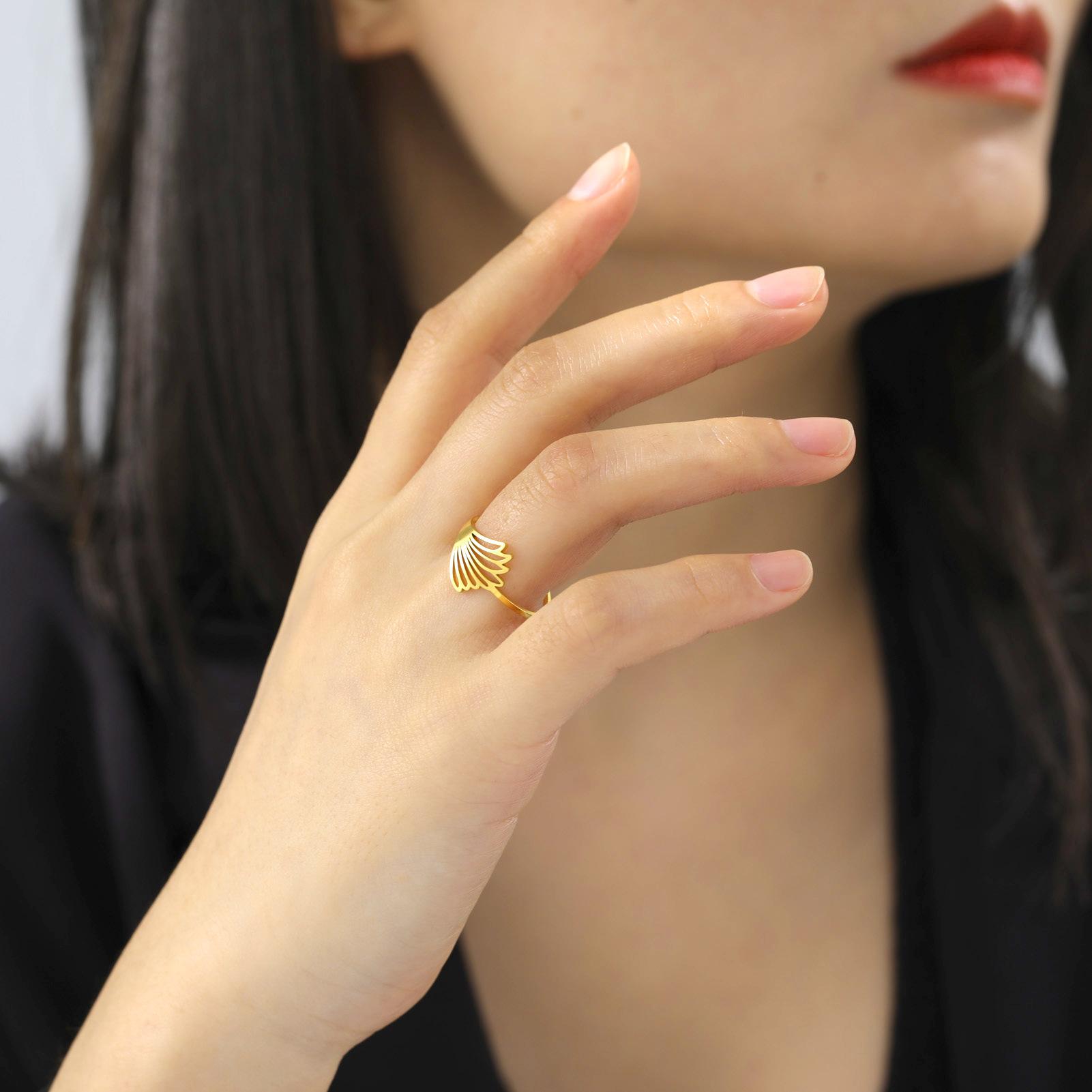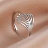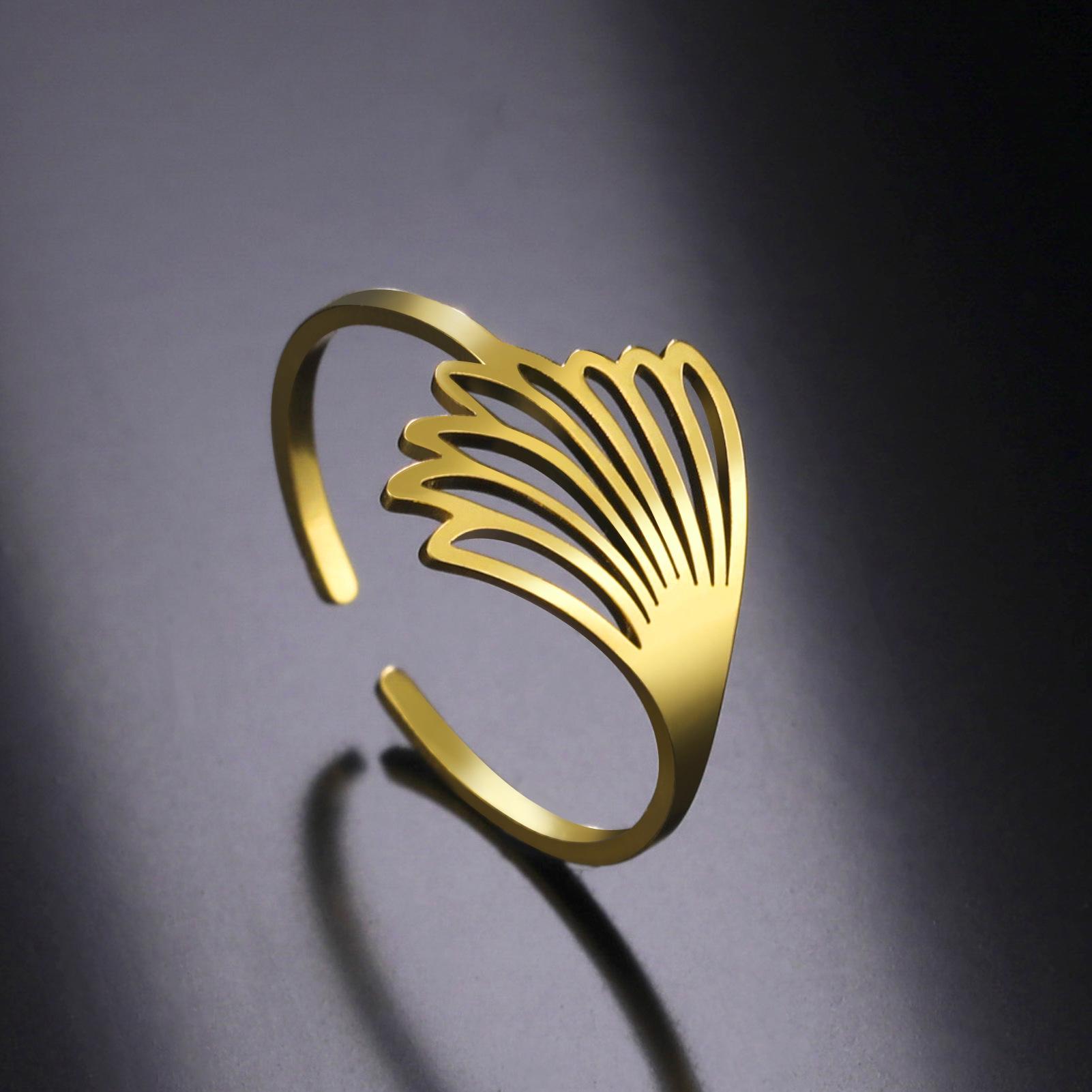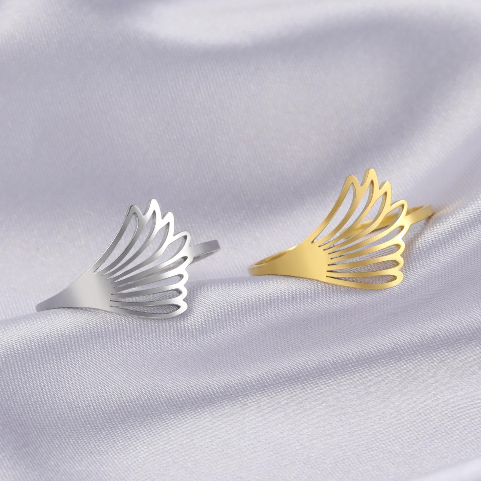 Cross-border europeu e americano Moda simples corte oco titânio aço pena asa anel de abertura anel de aço inoxidável para homens e mulheres