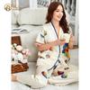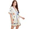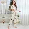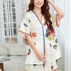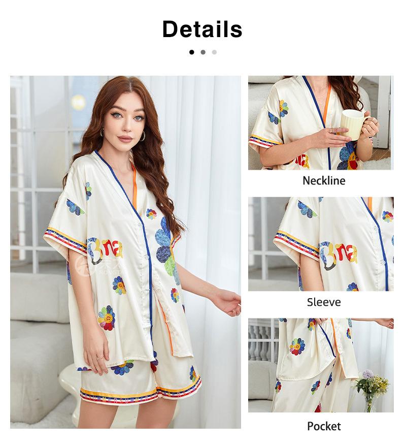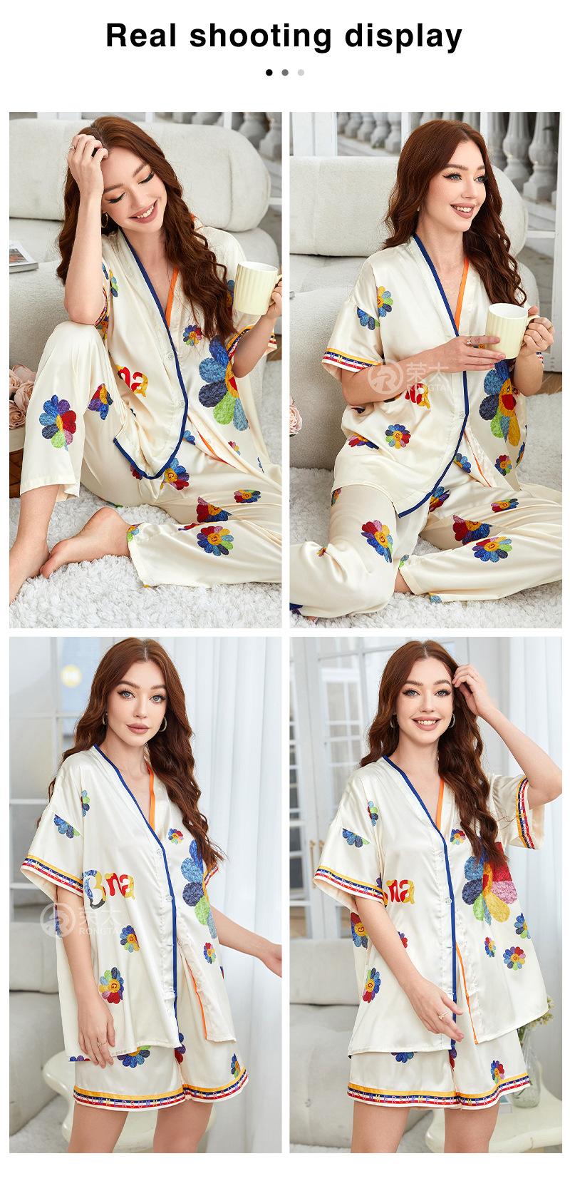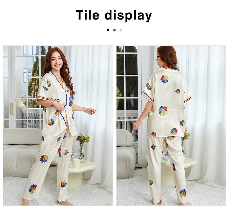 Verão Pijamas de Seda Terno Girassol Cetim V-Neck Home Wear Fino Exterior Vestindo Pijamas Terno