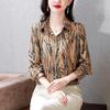Camisa de seda listrada retrô estampada para mulheres 2023 outono novo nicho temperamento temperamento emagrecimento