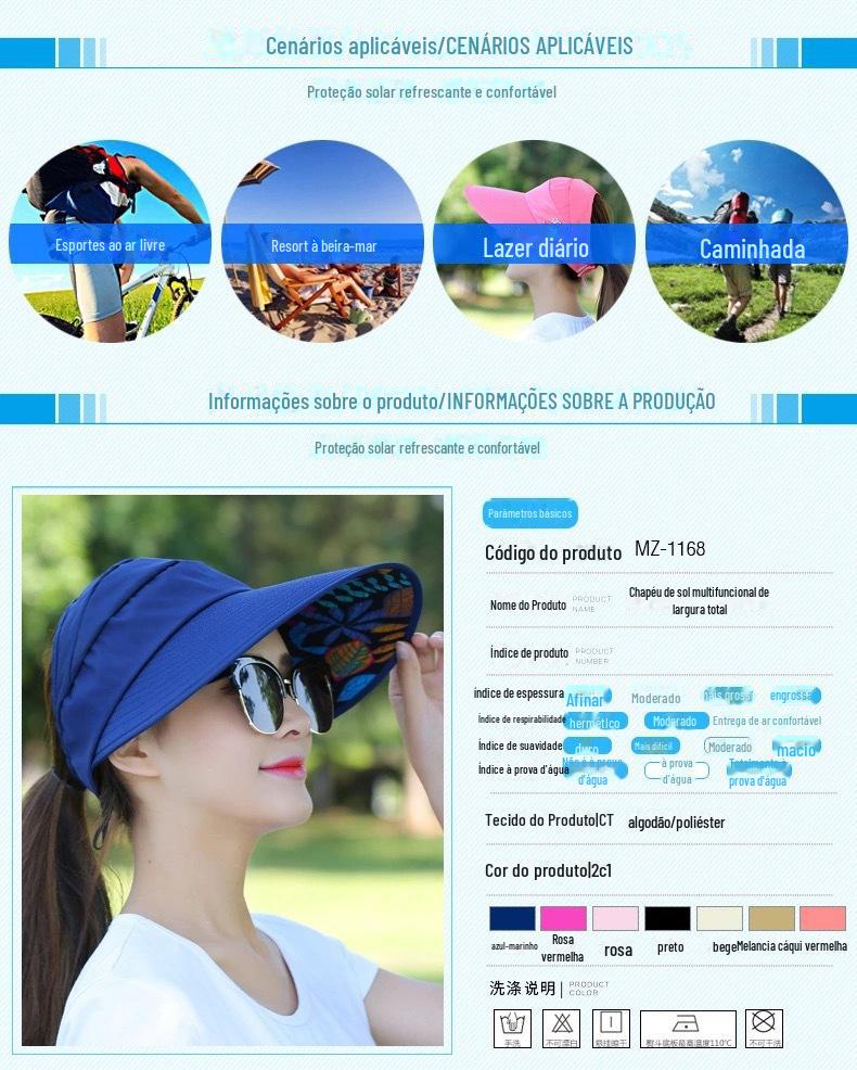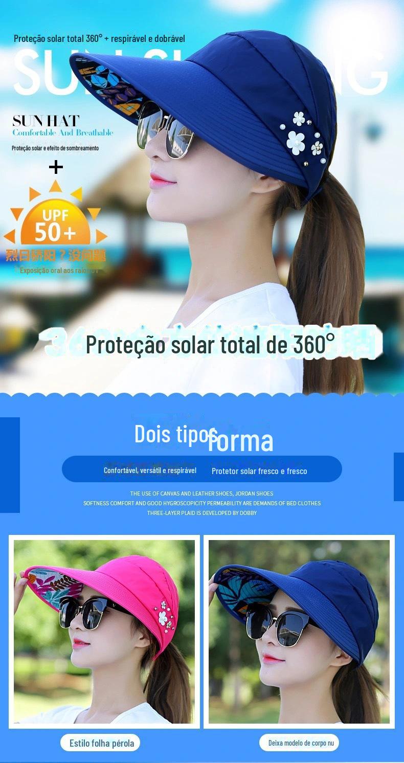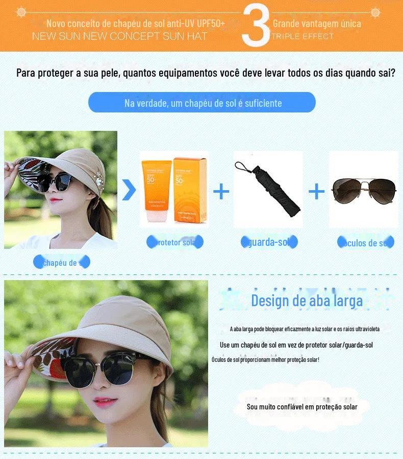 Chapéu feminino chapéu de sol verão proteção UV aba grande ciclismo aba dura praia chapéu de sol proteção solar dobrável chapéu legal