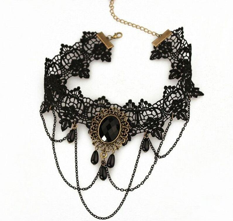 Europeu e americano gótico gargantilha preta colar de renda colar feminino exagerado clavícula cadeia de clavícula falsa joias artesanais