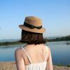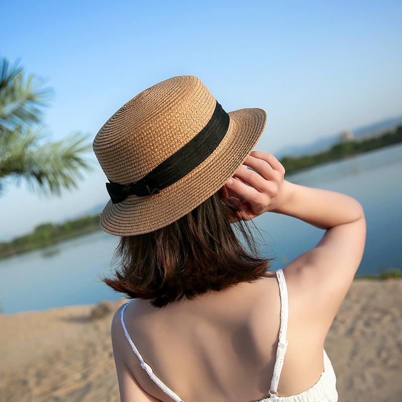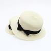 Chapéu de palha com cúpula de comércio exterior, chapéu pequeno britânico, chapéu plano, proteção solar, chapéu de palha da moda, chapéu de verão com laço