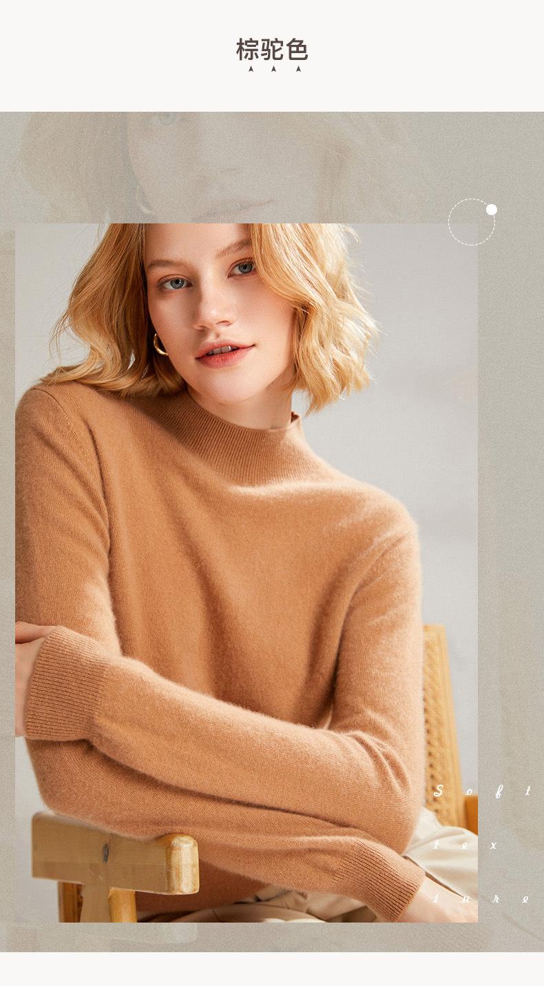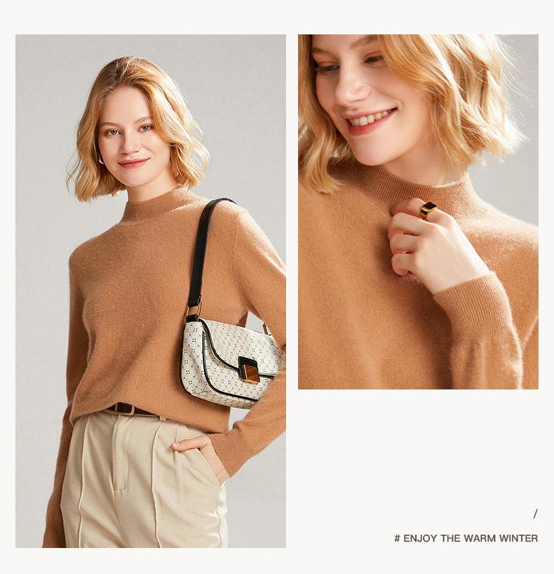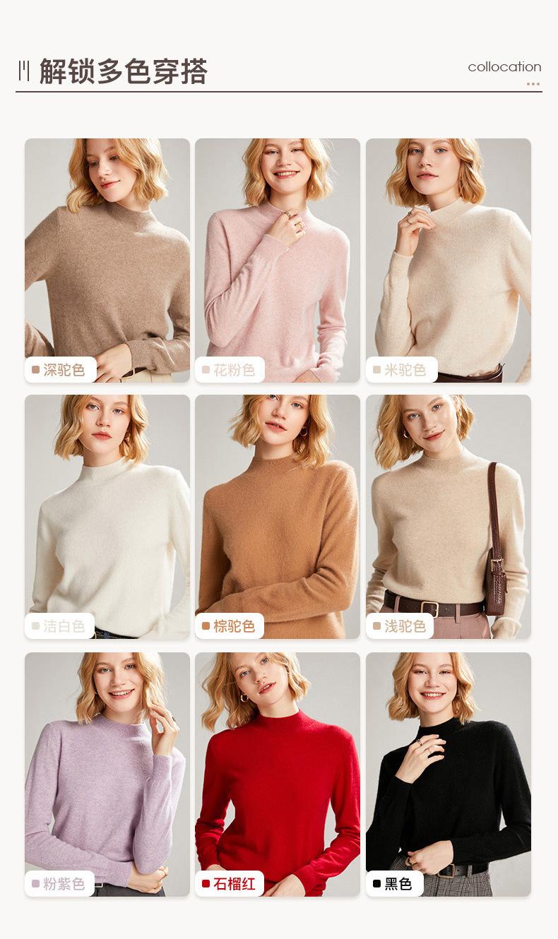 Novo Suéter de Caxemira Feminino de Cor Sólida para Outono e Inverno, Suéter Básico de Gola Alta, Camisa Básica Tricotada, Atacado de Peça Única