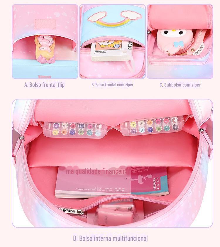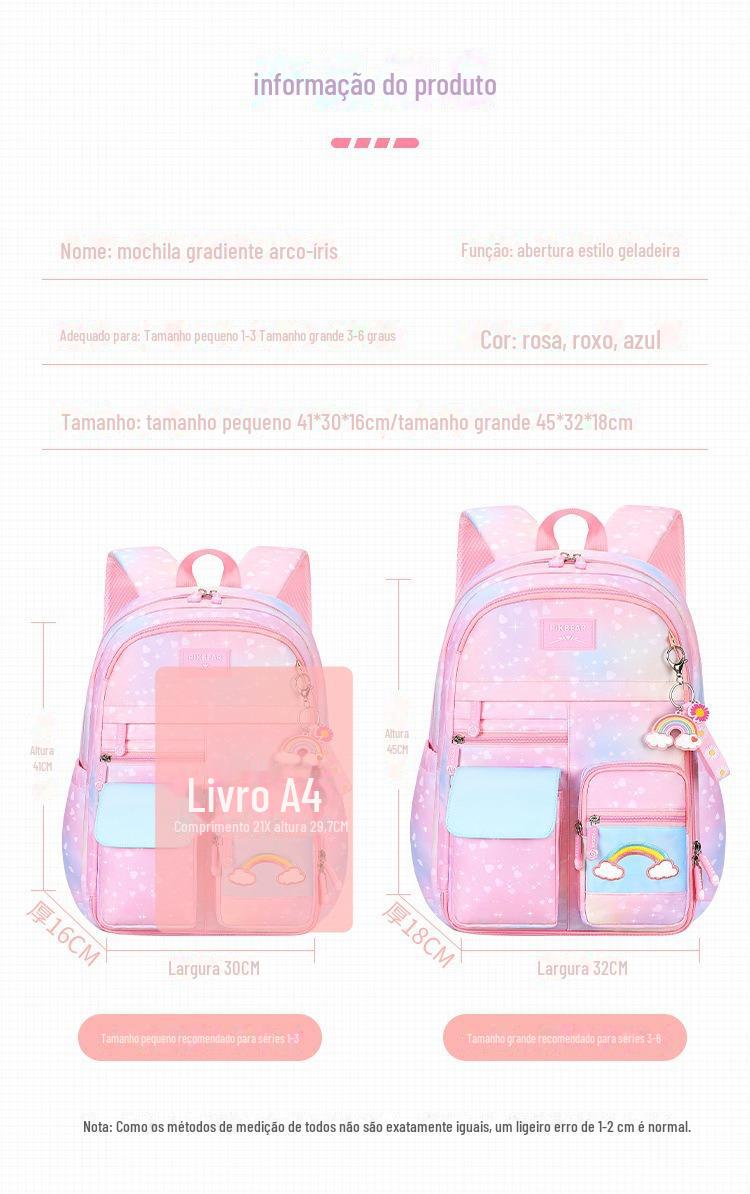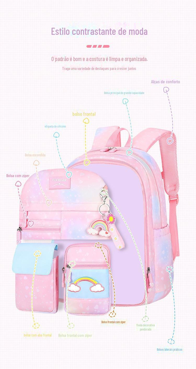 Cross-Border Primary School Princess mochila escolar casual bonito geladeira mochila multi-funcional gradiente cor da bolsa escolar das meninas