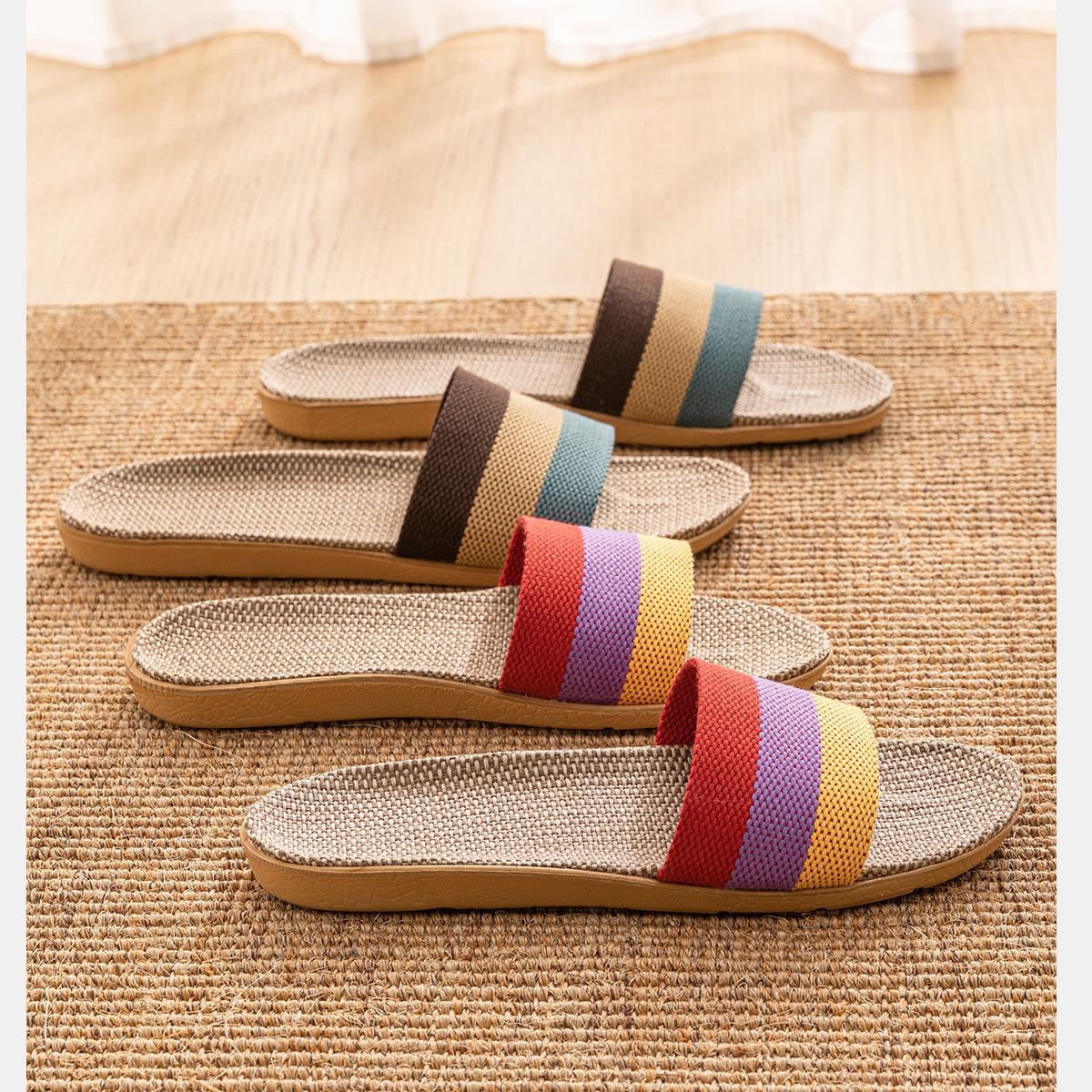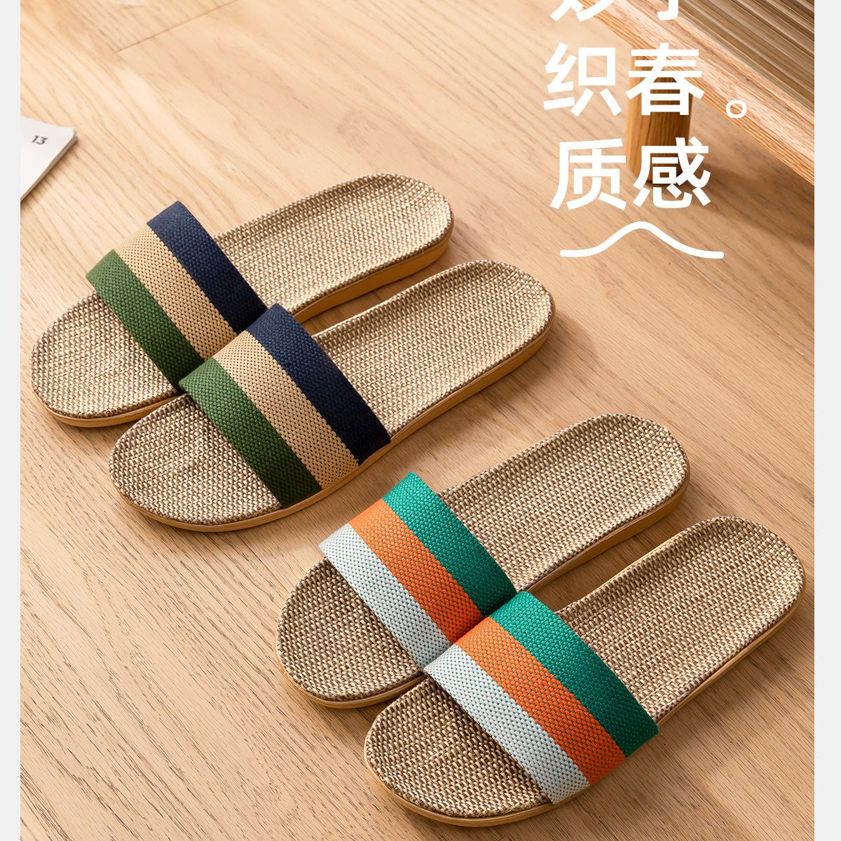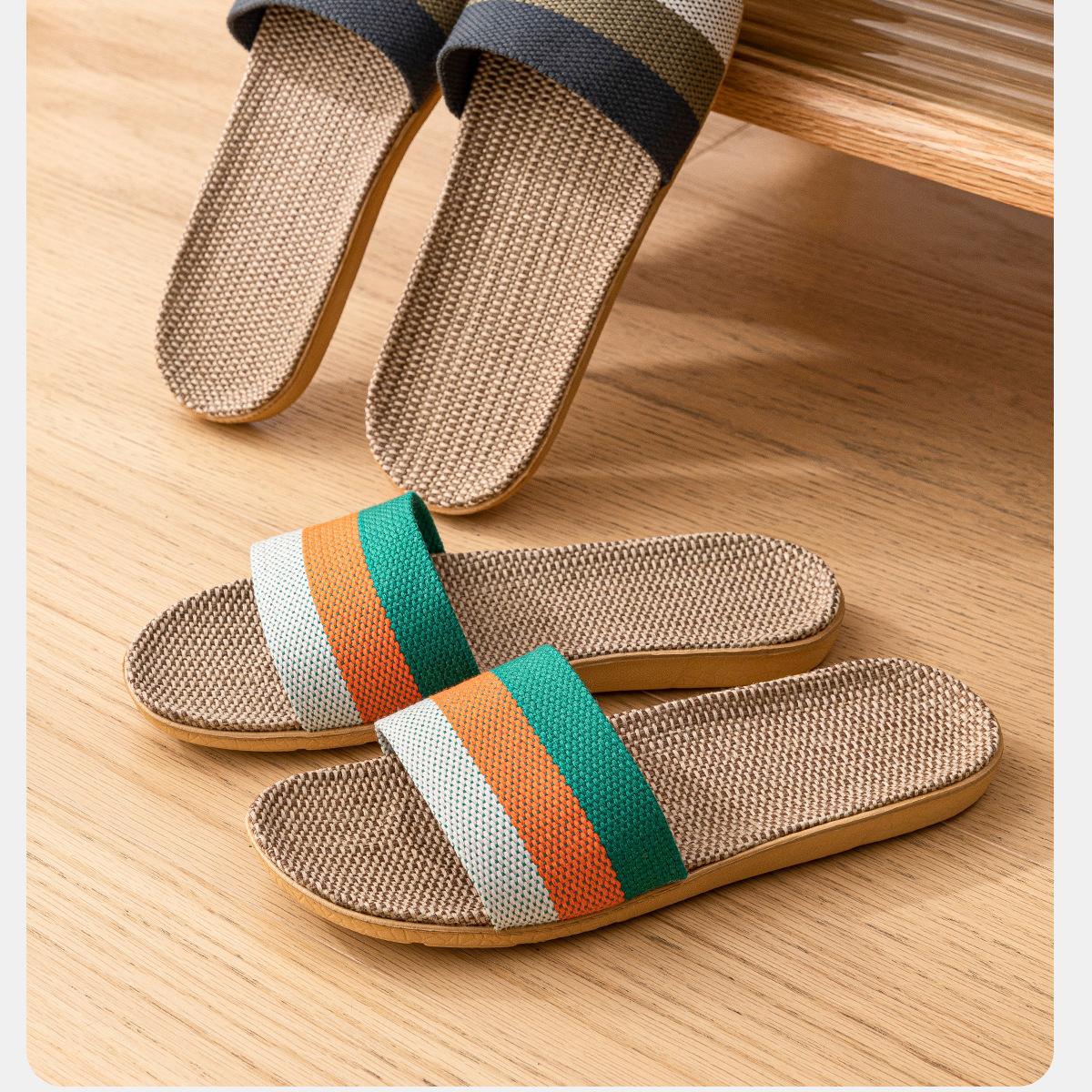 Pantufas de linho para uso doméstico, femininas, para o verão, para áreas internas, antiderrapantes, para casais, primavera e outono, de algodão e linho, para homens