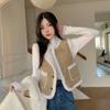 Casaco de pele de cordeiro feminino, pele de inverno, peça única, contraste de cores, costura, casual, solto, slim, casaco de ovelha jovem