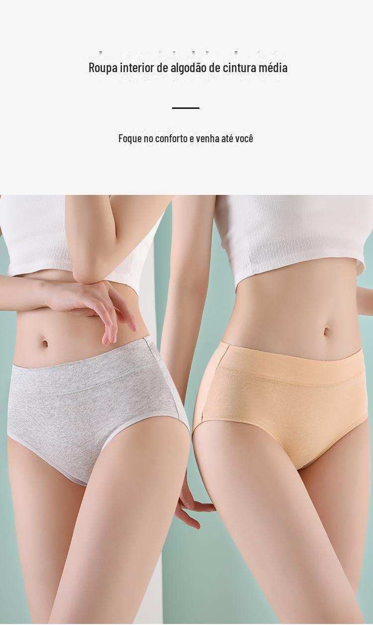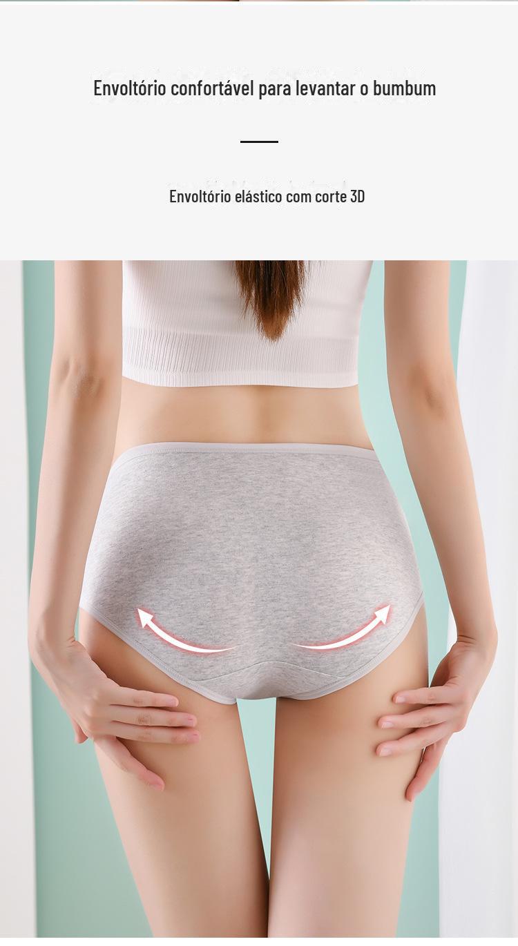Calcinha Feminina de Algodão Puro Cintura Média Cor Pura Confortável e Respirável Clássica Algodão Puro Crotch Shorts Calcinhas Levanta Bumbum