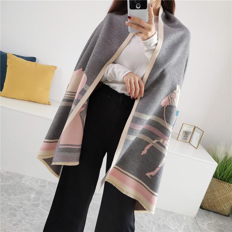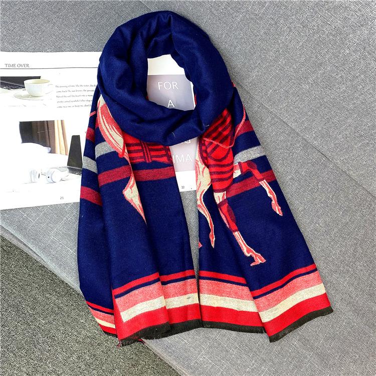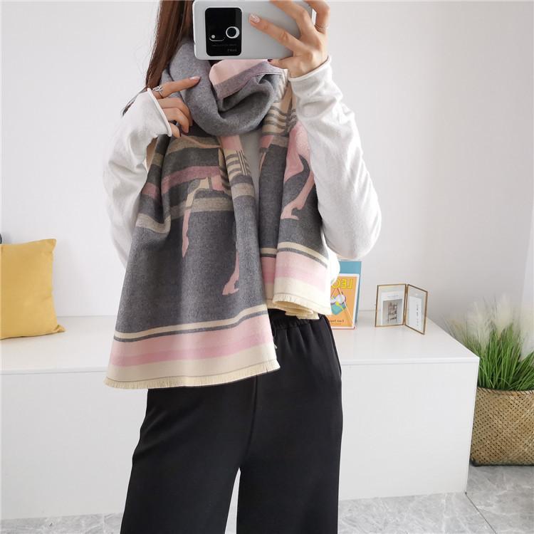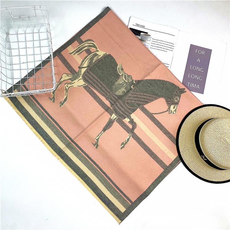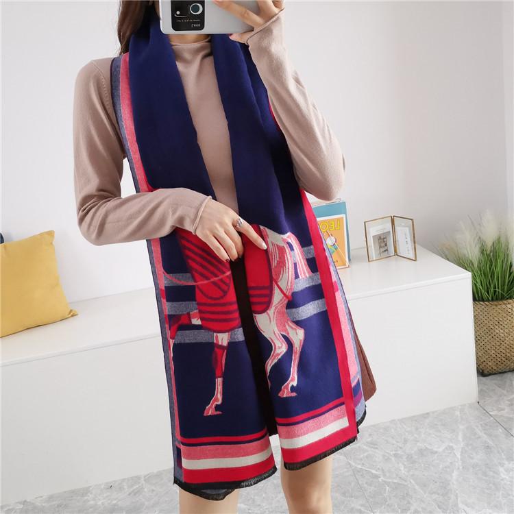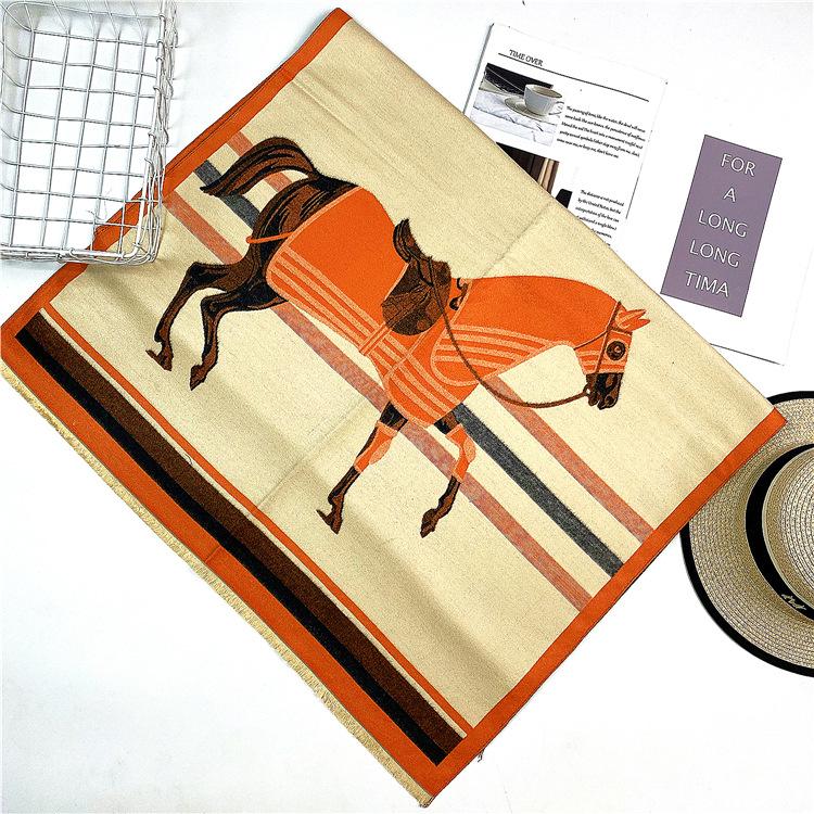 Outono Novo Cachecol Feminino Cashmere Inverno Longo Jacquard Cavalo Europeu e Americano Dupla face quente à prova de frio Xale