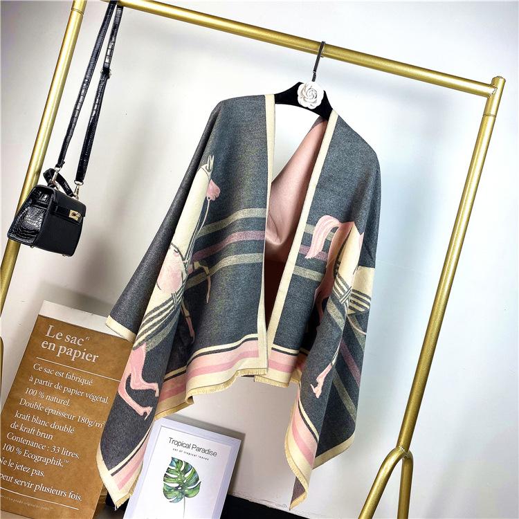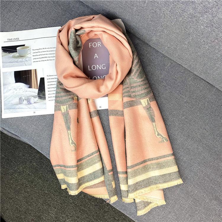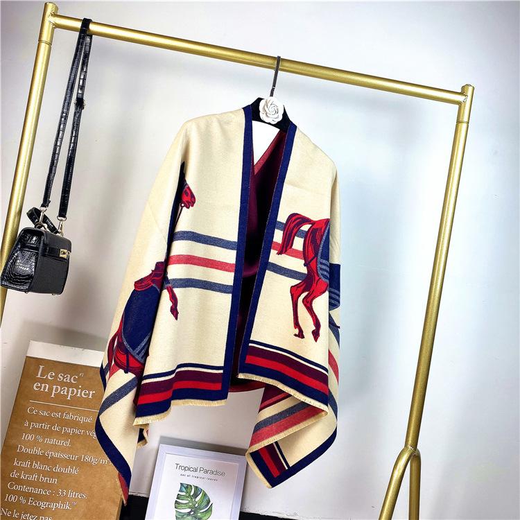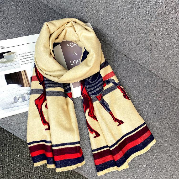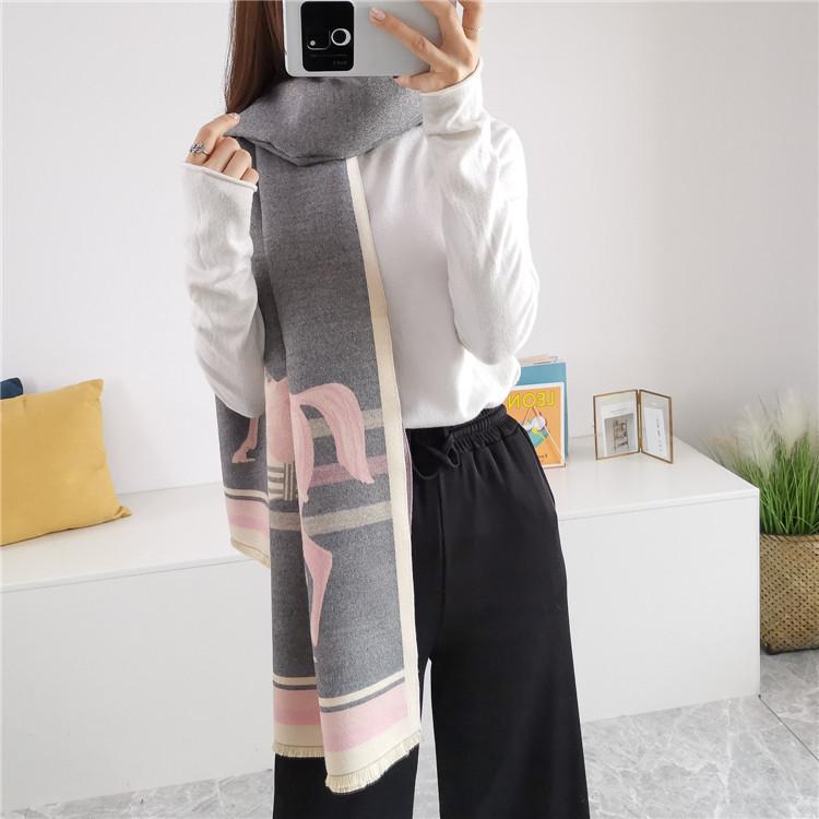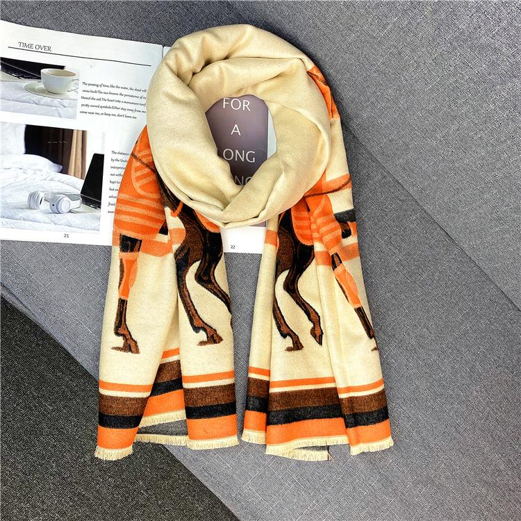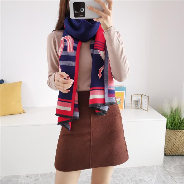 Outono Novo Cachecol Feminino Cashmere Inverno Longo Jacquard Cavalo Europeu e Americano Dupla face quente à prova de frio Xale