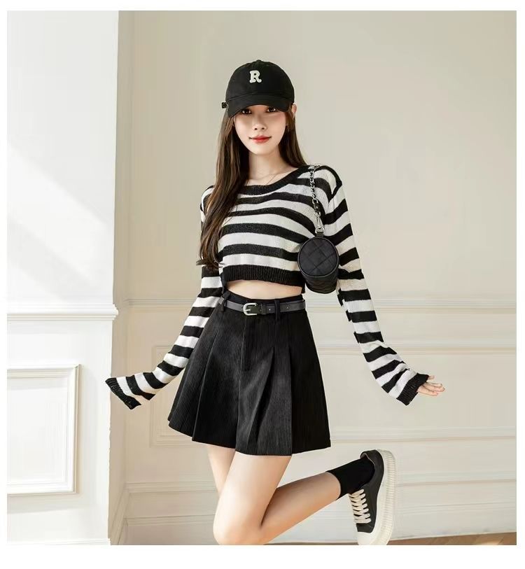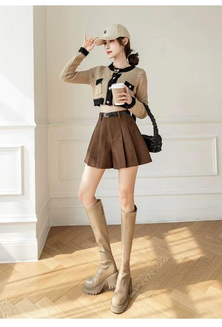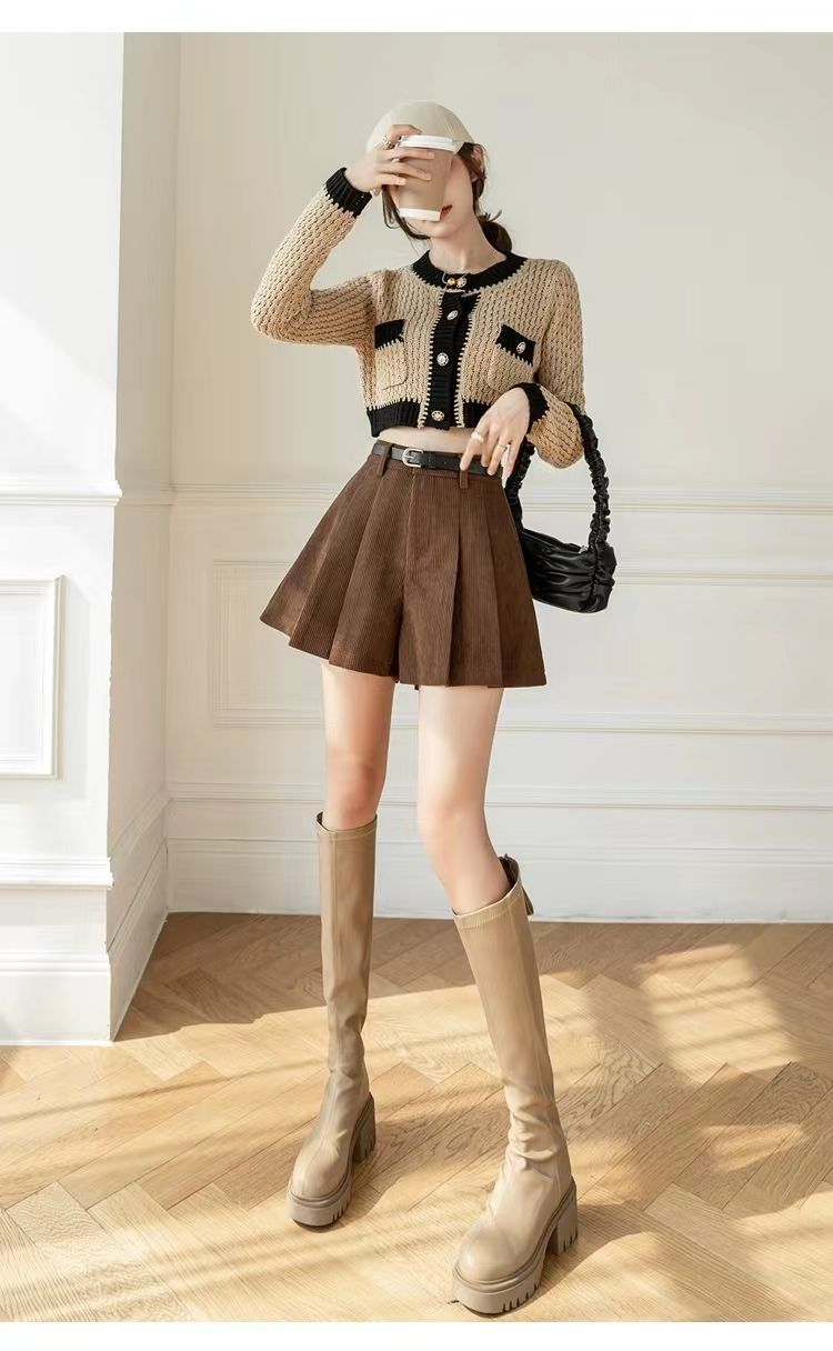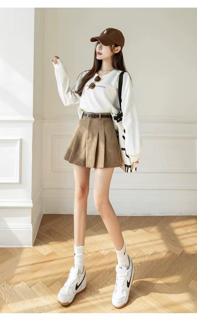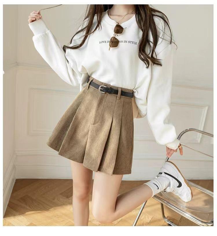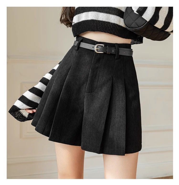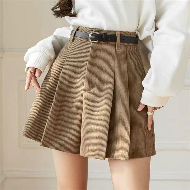 Outono e Inverno nova menina quente Anti-exposição corduroy saia curta plissada 2023 emagrecendo saia de cintura alta