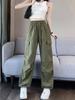 Estilo Americano Street Overalls Feminino Verão Novo Cordão Cintura Alta Tubo Reto Solto Emagrecimento Casual Calças da Moda
