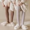 Meias de veludo coral femininas pós-parto outono e inverno, meias de dormir grossas e quentes de pelúcia, meias de chão com forro de lã para casa