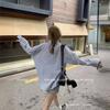 Blusa Fina Estilo Coreano Top Feminino Design Primavera & Outono Solto Preguiçoso Manga Longa Listras Azuis Camisa Casual Jaqueta