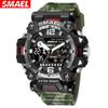 SMAEL ao ar livre camuflagem relógio militar tático multi-função impermeável luminoso relógio eletrônico de exibição dupla