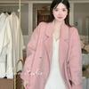 Casaco Rosa 2023 Outono e Inverno Novo Alto Estilo Francês Suave Emagrecimento Elegante Casaco de Lã de Médio Comprimento para Mulheres