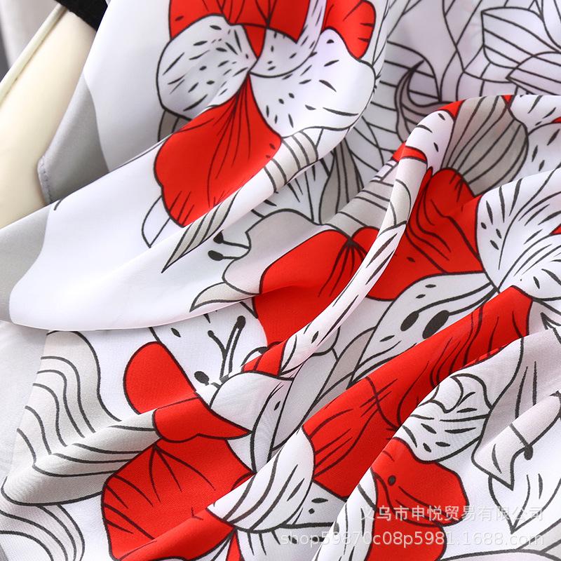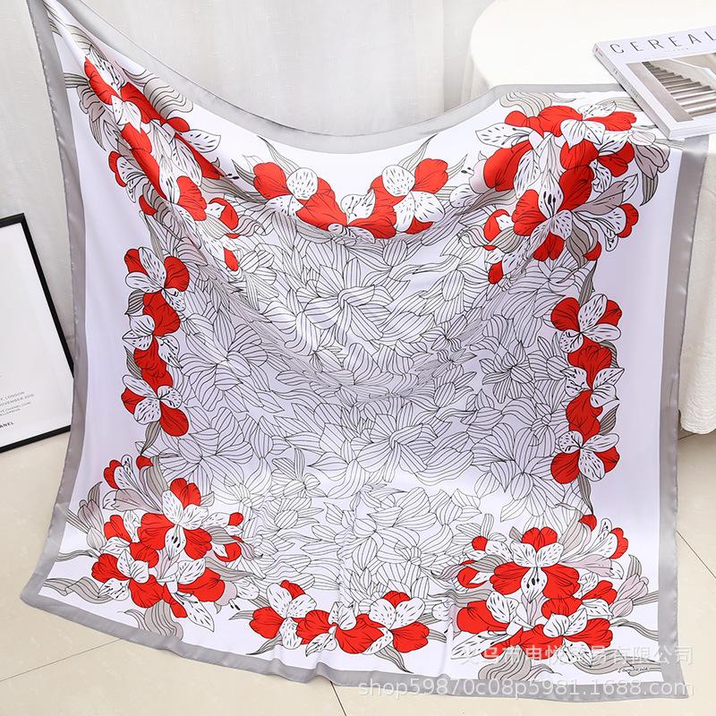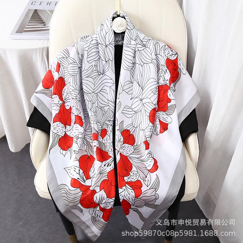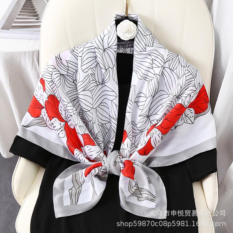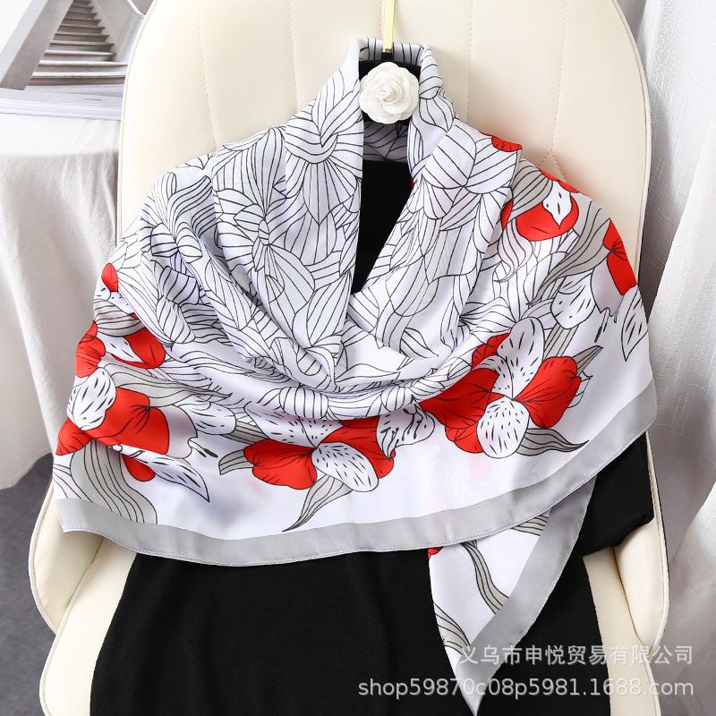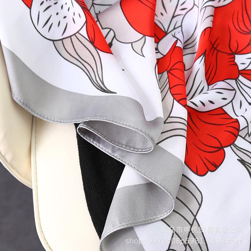 Primavera e outono moda novas folhas elegantes impressão de seda artificial 110 grande lenço quadrado viagem protetor solar xaile lenço para as mulheres