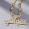 Nome do item/produto: diamante completo tridimensional letras cursivas hip-hop pingente jóias atacado