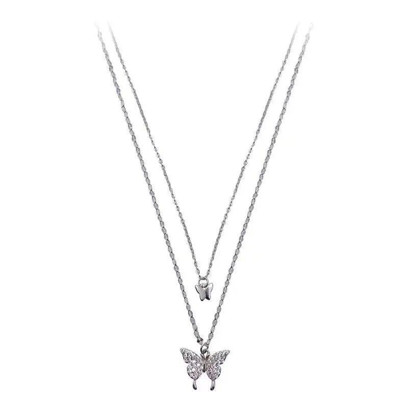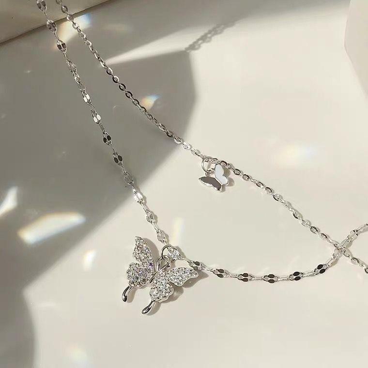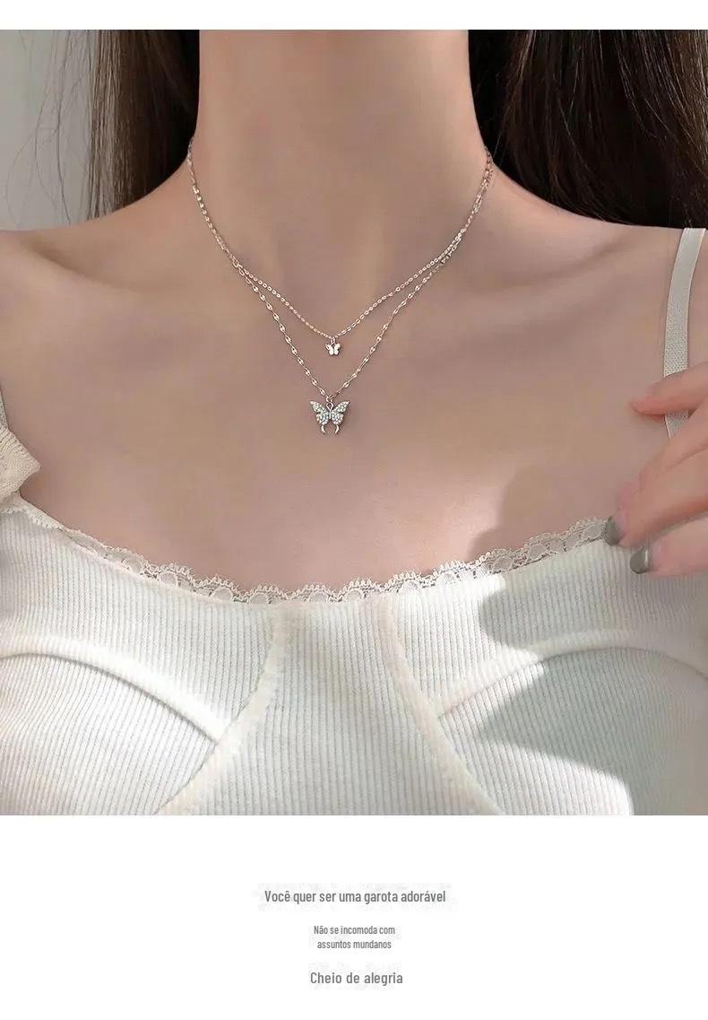 Flash diamante de camada dupla colar borboleta ~ 2021 Novo colar de moda Four Seasons na Coreia do Sul design de nicho cadeia de clavícula de vento frio