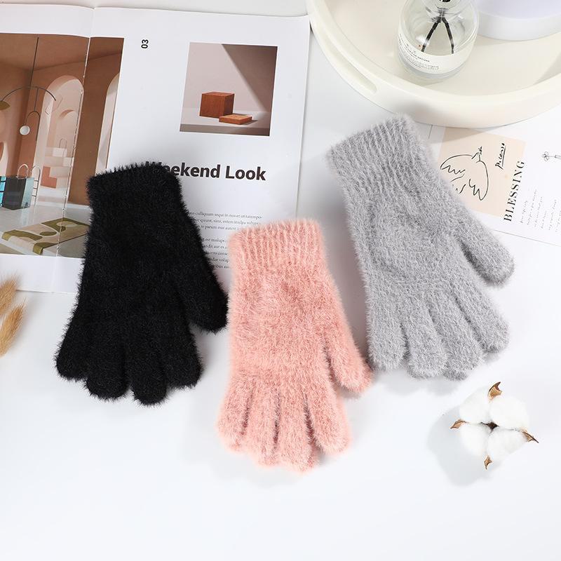Inverno grosso quente luvas monocromáticas estudante dedo pelúcia luvas moda simples equitação ao ar livre luvas de malha
