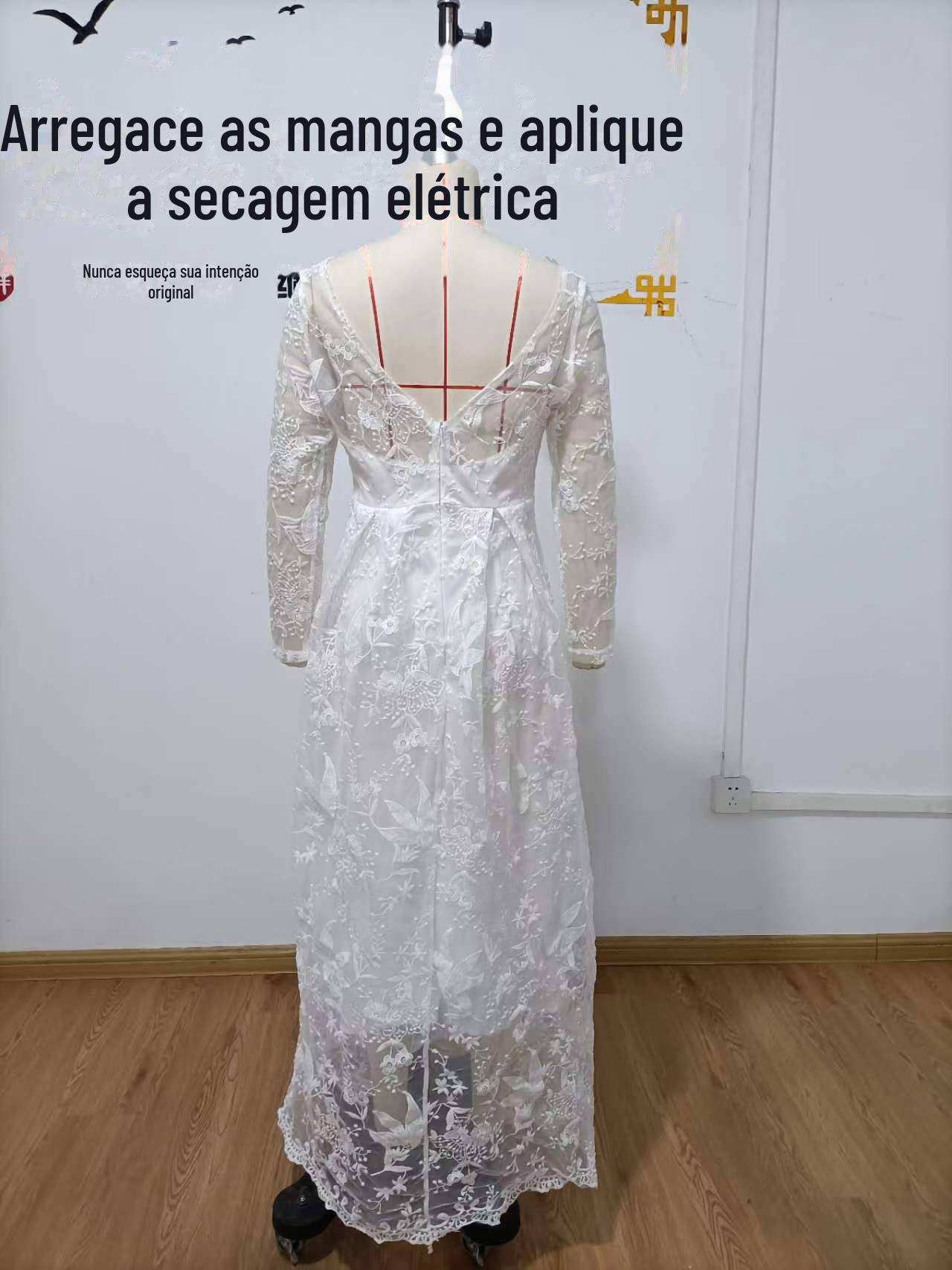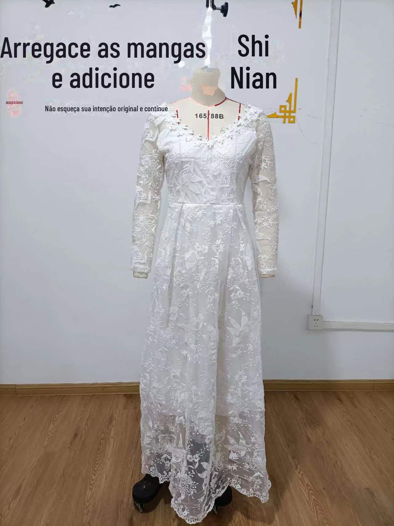 2025 Primavera Transfronteiriça Nova Roupa Europeia e Americana Amazon Vestido de Noiva Ombro Único Manga Longa Saia Longa