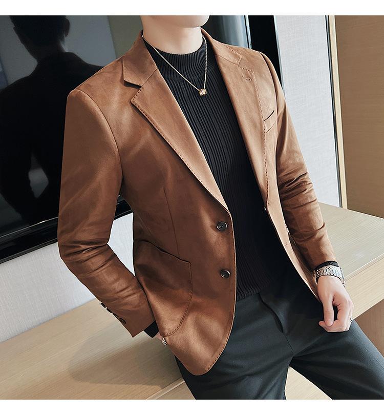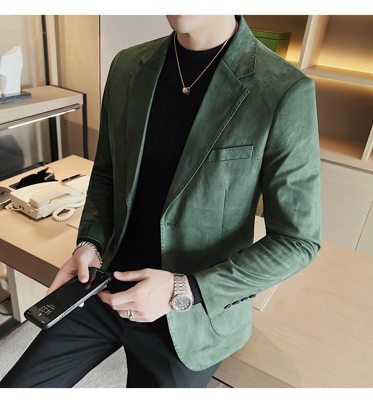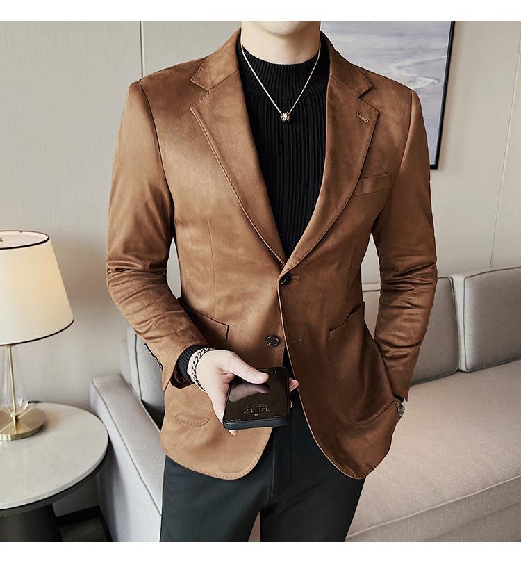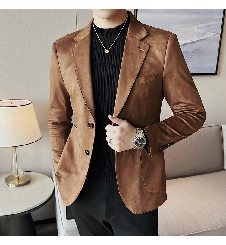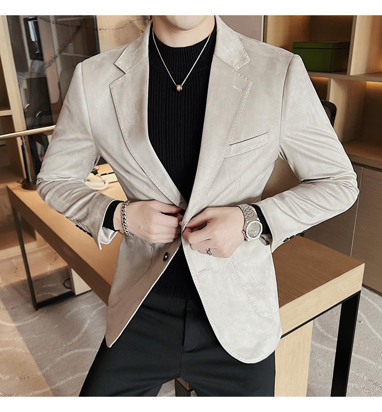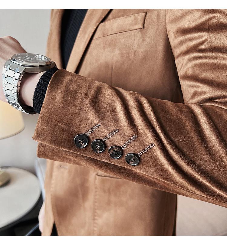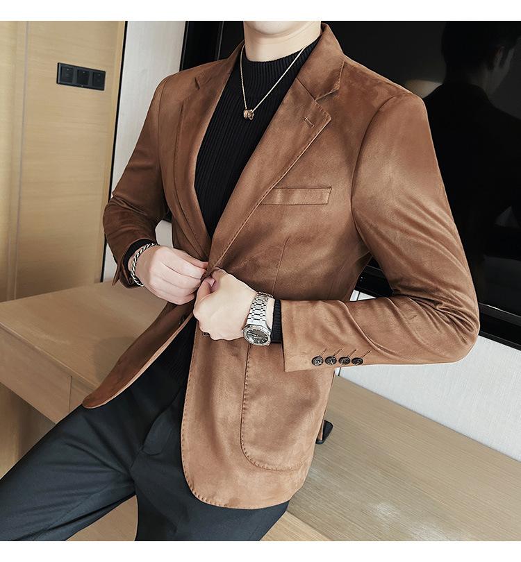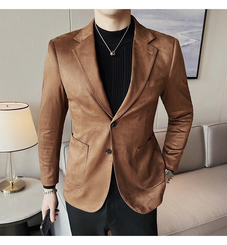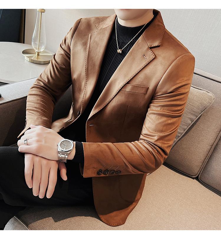Compre Outono 2022 Novo Masculino Deerskin Fleece Thickened Suit Jacket Slim-fit Moda Terno Duffian bonito Single Western Top no atacado no Joom.pro