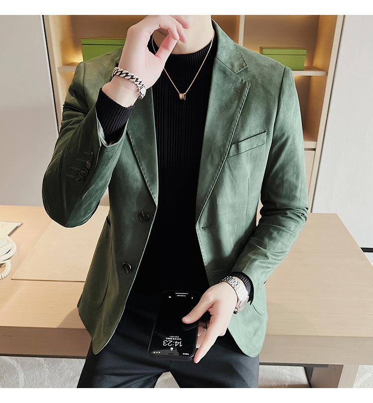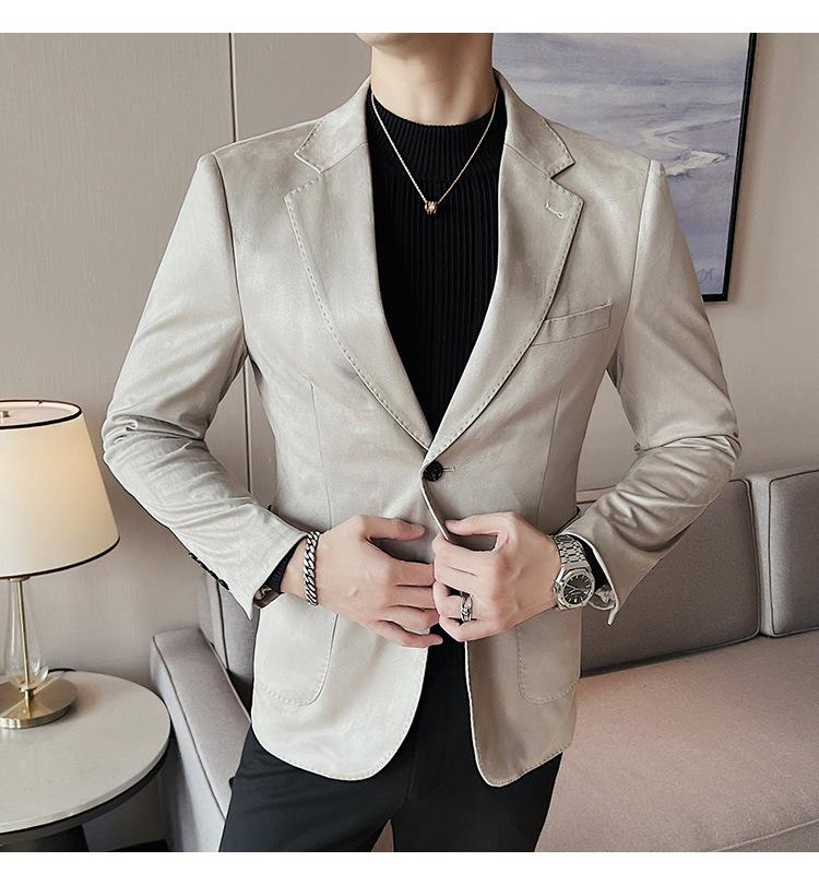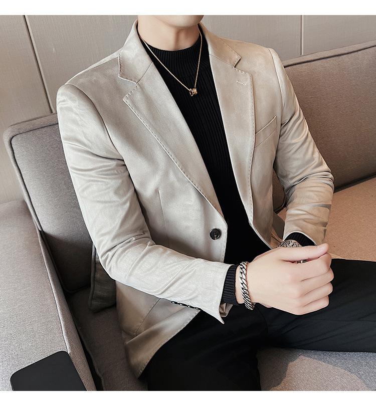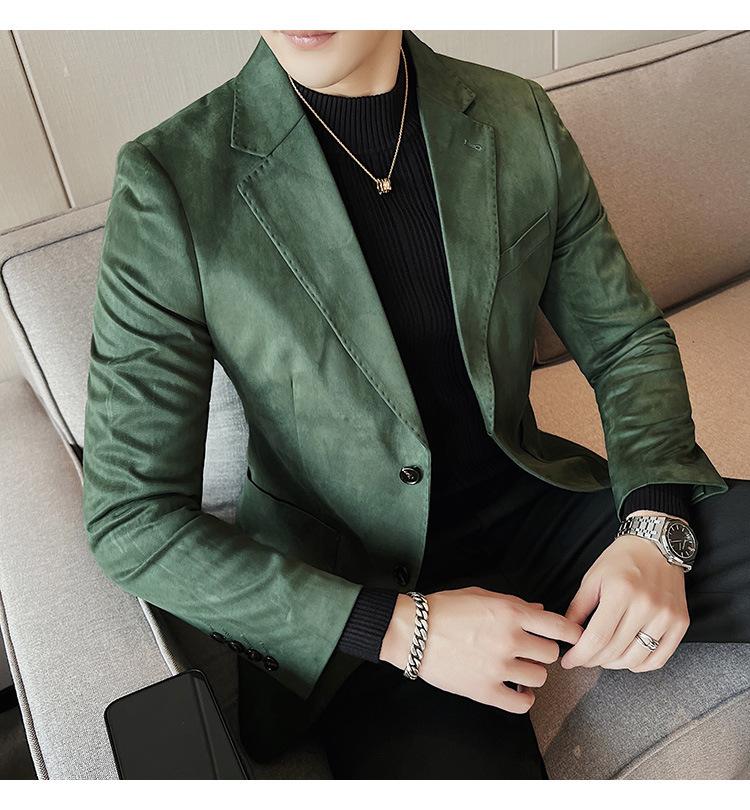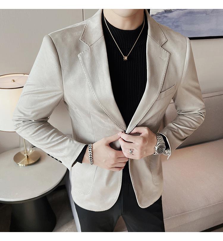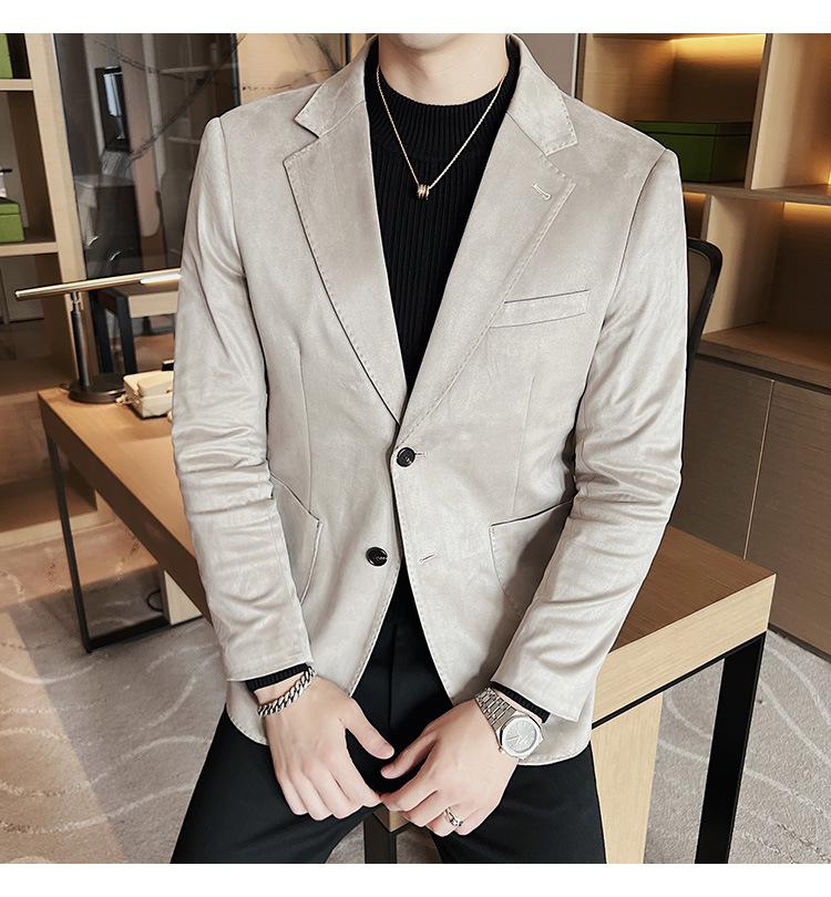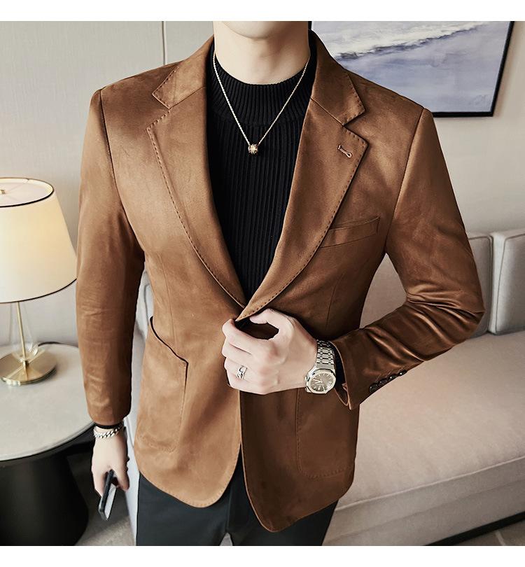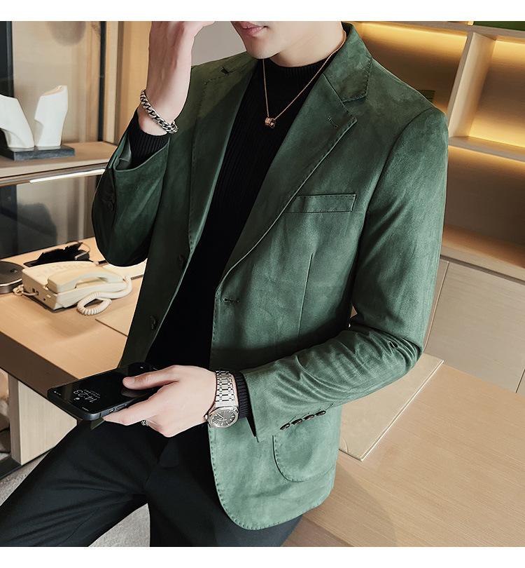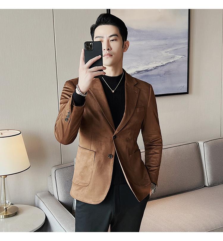 Compre Outono 2022 Novo Masculino Deerskin Fleece Thickened Suit Jacket Slim-fit Moda Terno Duffian bonito Single Western Top no atacado no Joom.pro