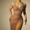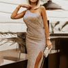 Comércio exterior europeu e americano novo sem mangas alça V-neck slim vestido longo banquete vestido de noite vestido de lantejoulas
