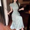 Novo vestido cheongsam de seda chinesa modificado feminino verão 2023 novo estilo nacional retrô elegante slim fit vestido plus size
