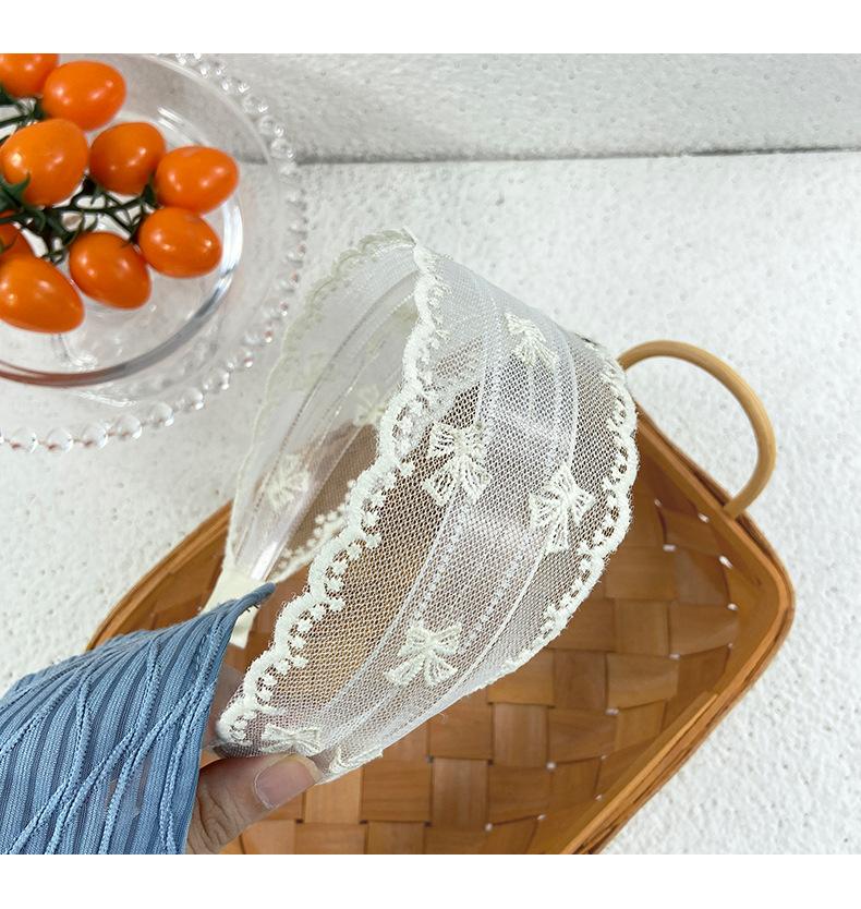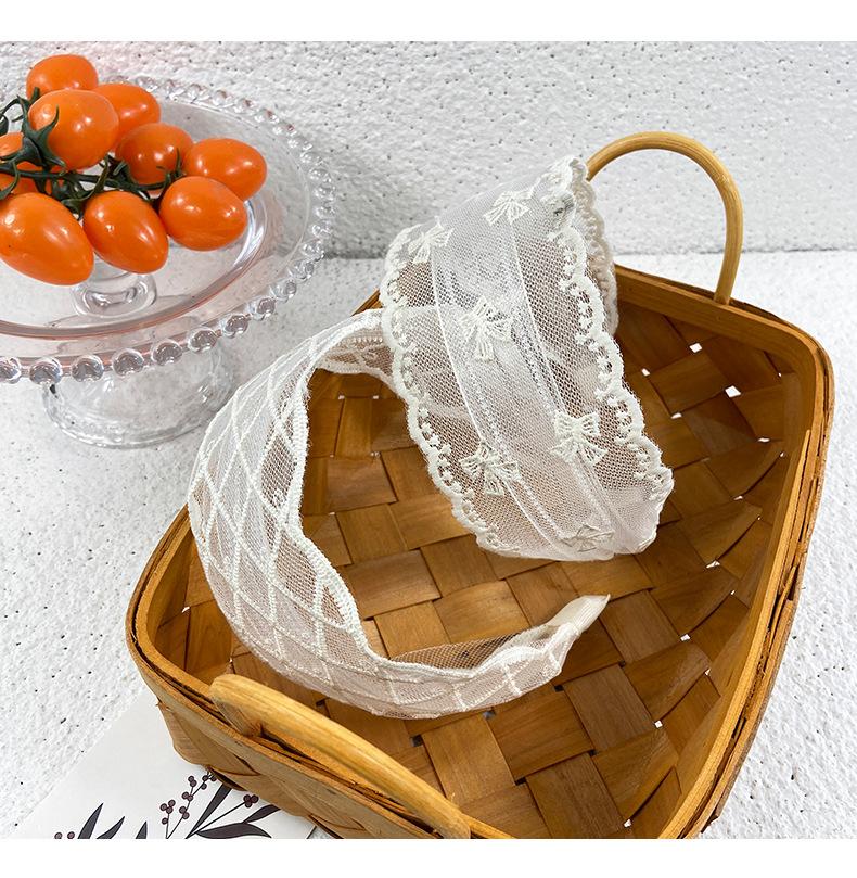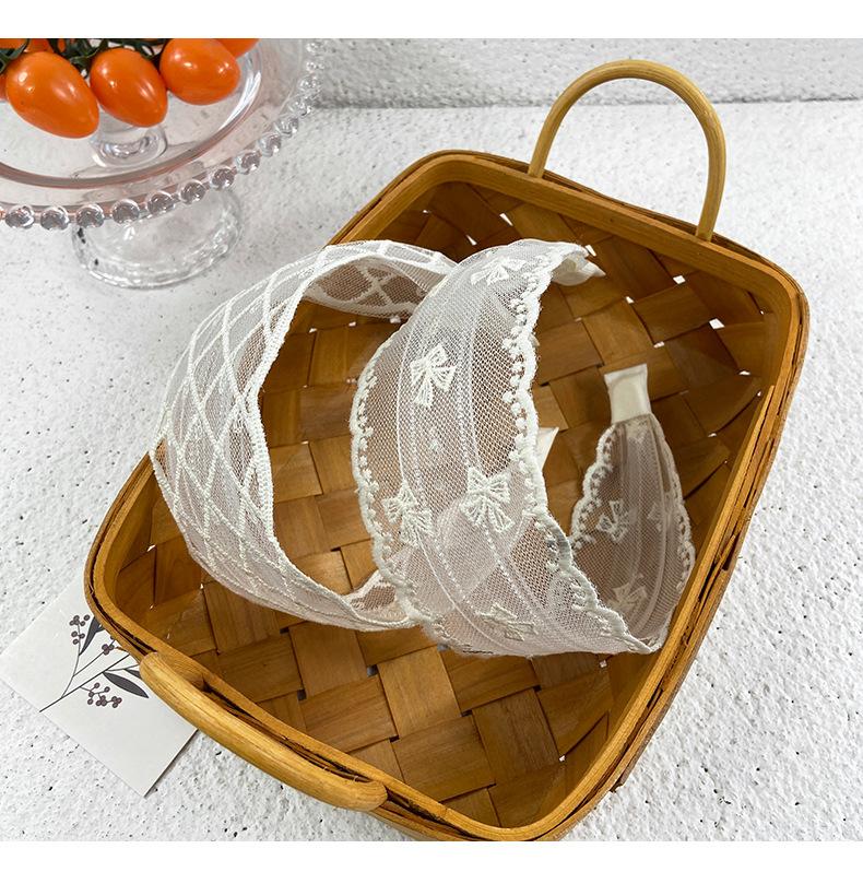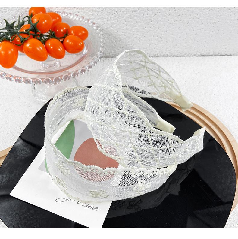 White Bow Pattern Lace Headband, White Grid Pattern Lace Hair Hoop, White five-pointed star pattern lace headband