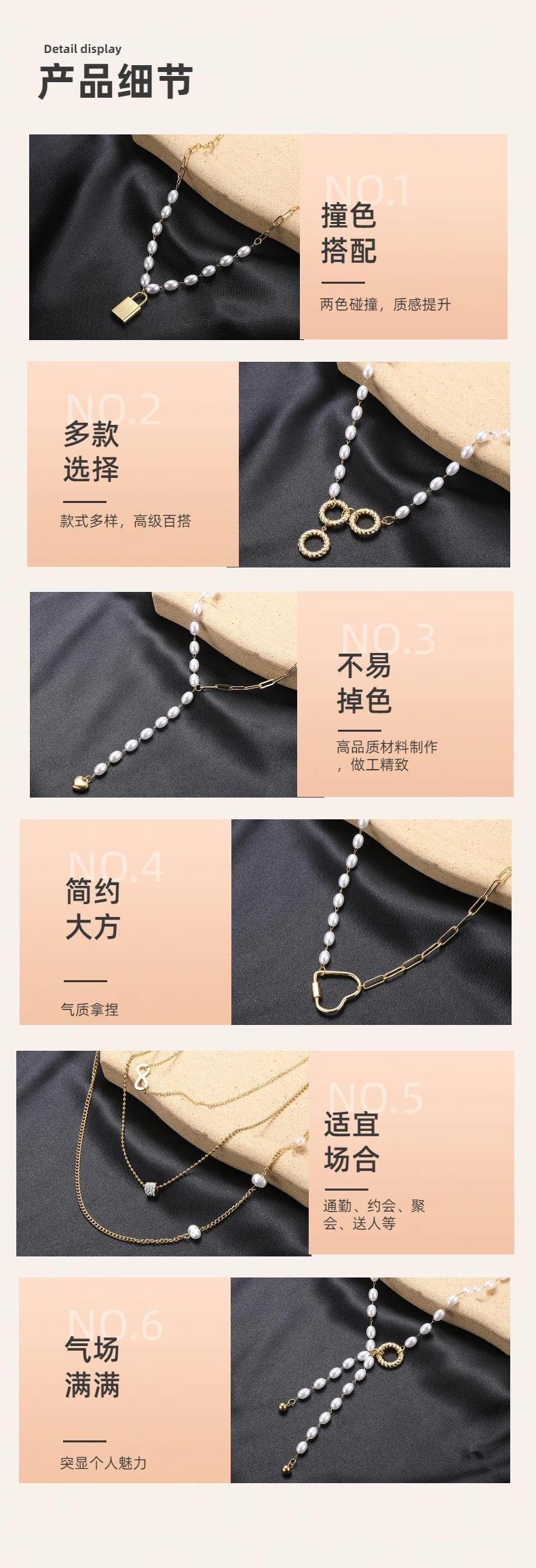 Colar de Aço Titânio Estilo Europeu e Americano para Mulheres, Versátil, Sofisticado, Nicho, Corrente Clavicular de Pérola Simples, Venda por Atacado de Joias, Exquisito